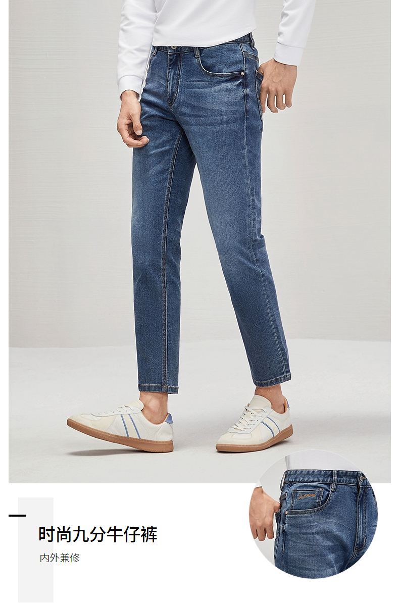 柒牌男装牛仔裤男2025春夏新款时尚潮流中青年休闲百搭九分小脚裤 128H70350