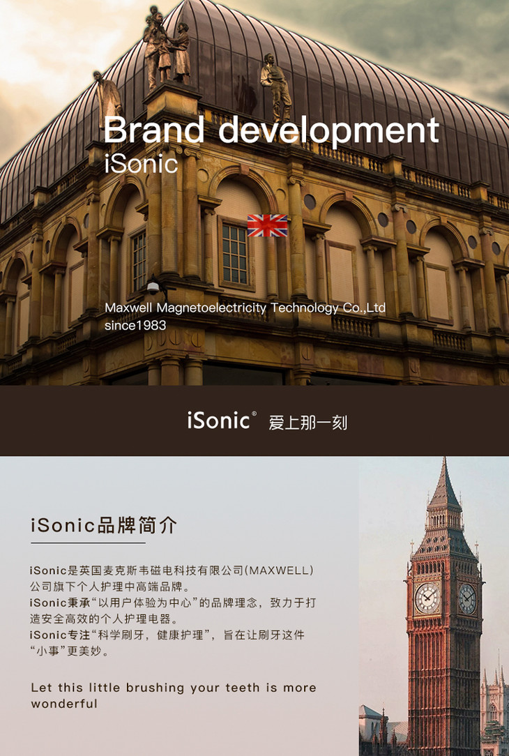 英国 ISONIC T5声波电动牙刷 成人充电男女深层清洁 推荐情侣男女超声波牙刷