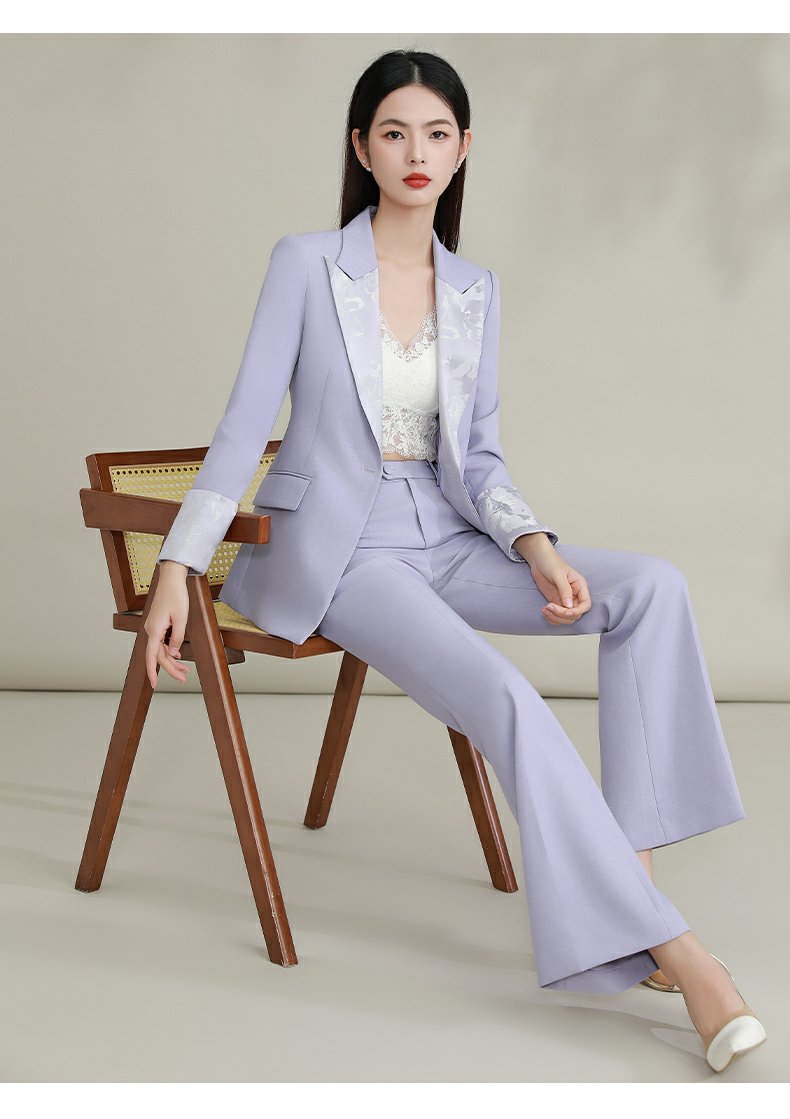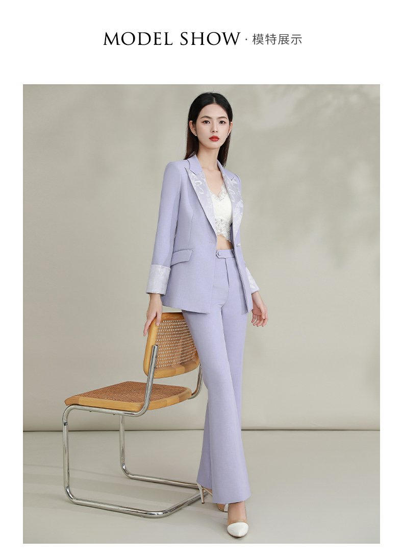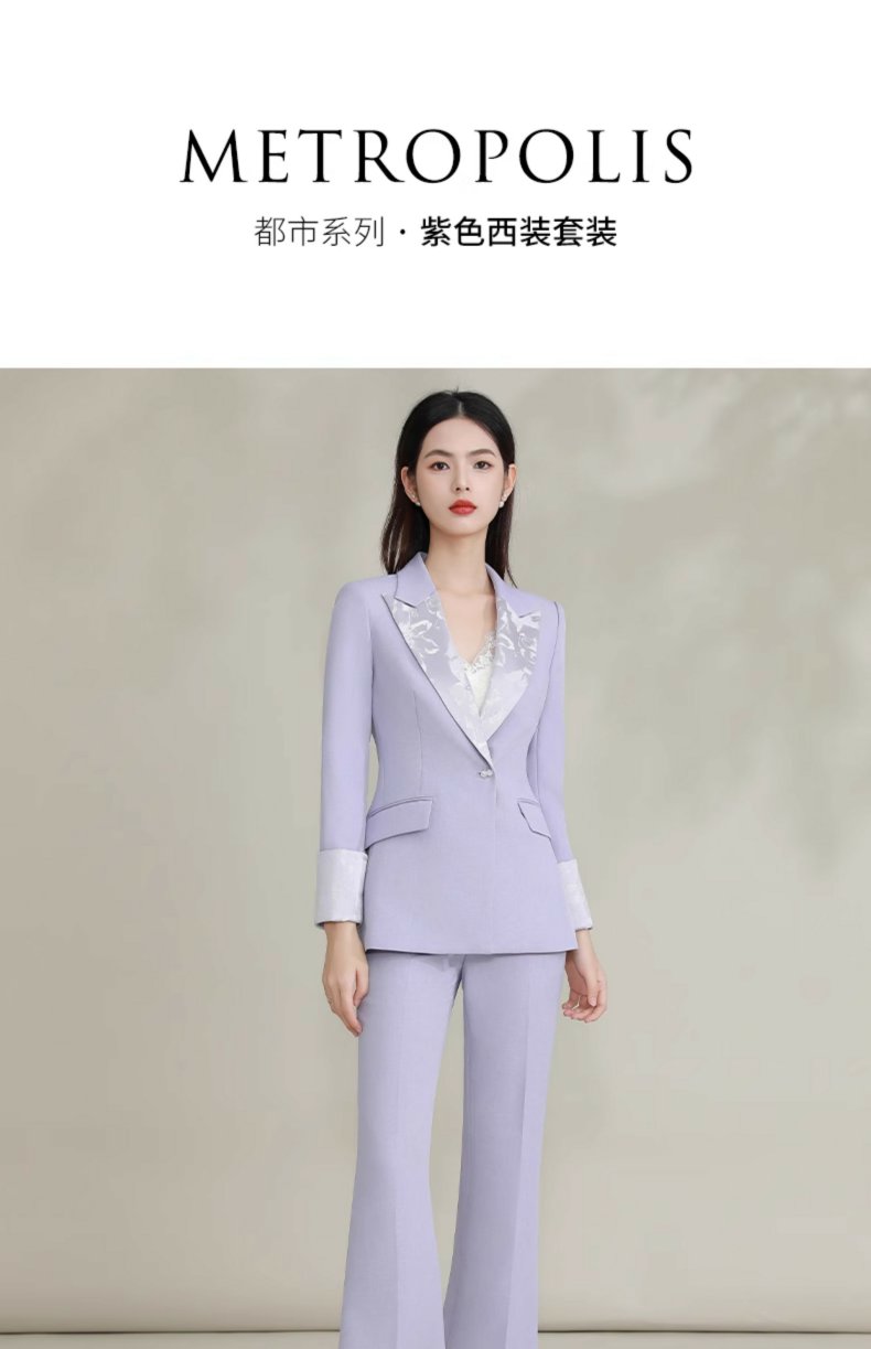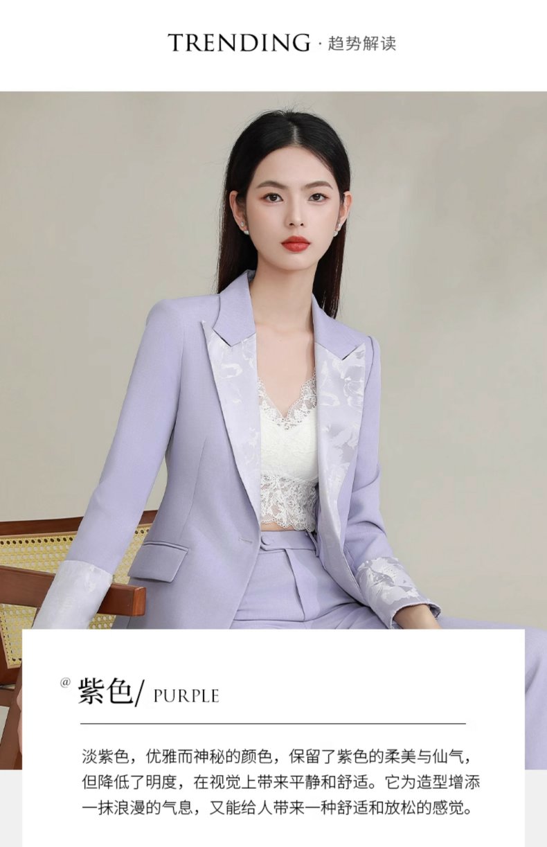 法小曼*子珍/紫色新中式套装时尚播音主持人西装缎领国风年会职业装高级FYCP035