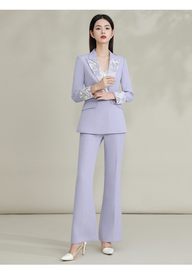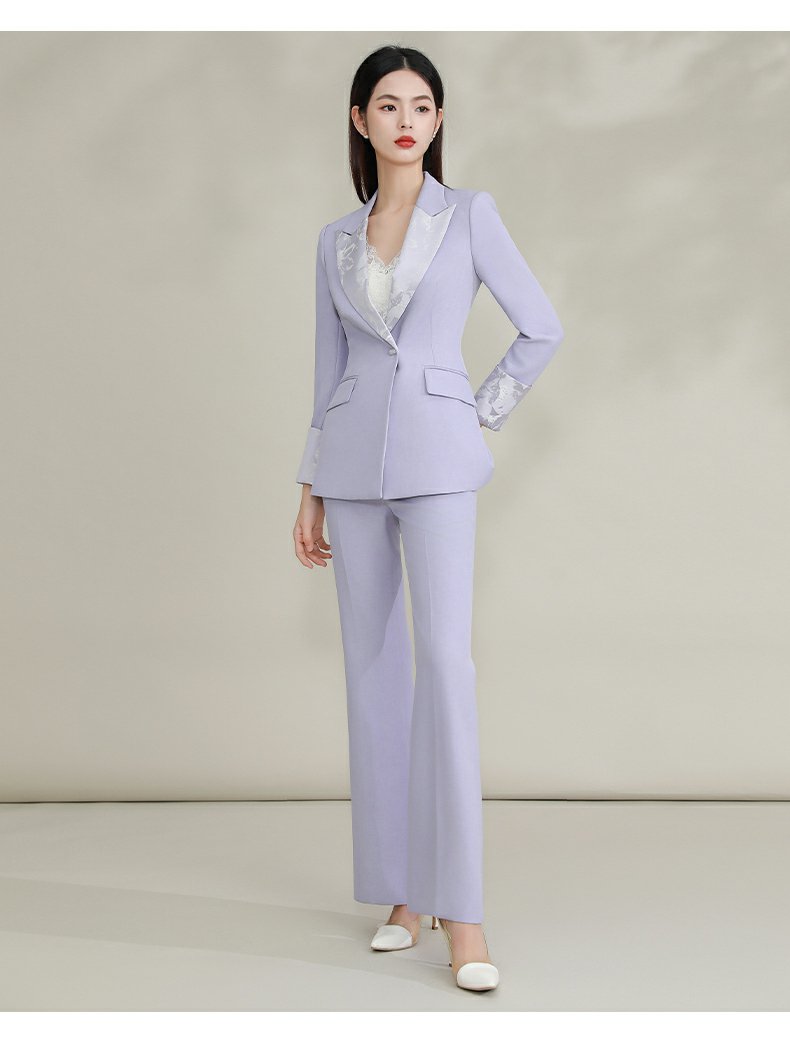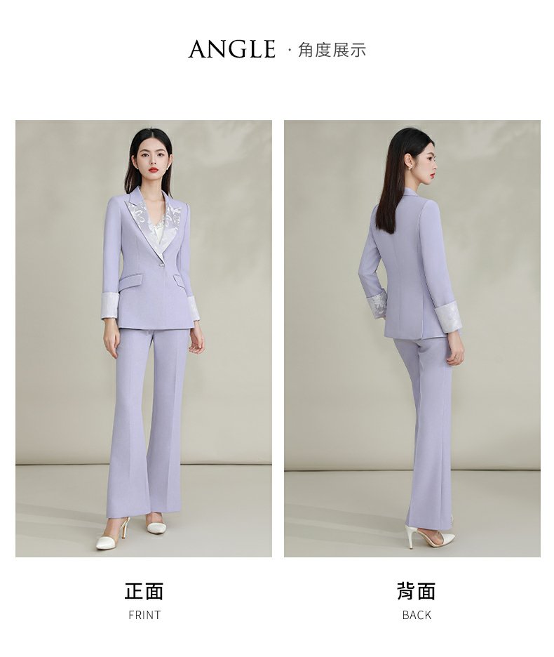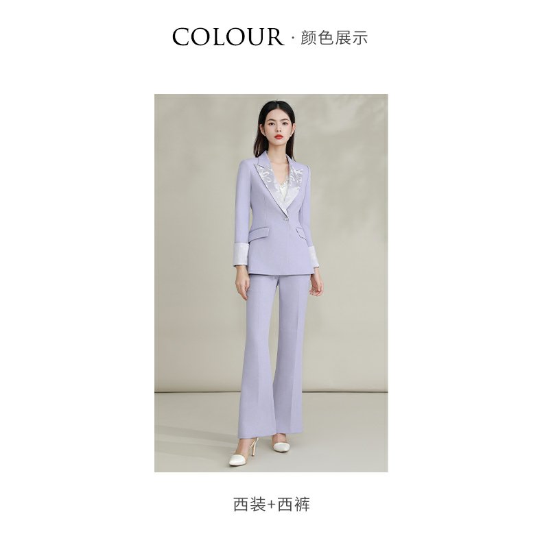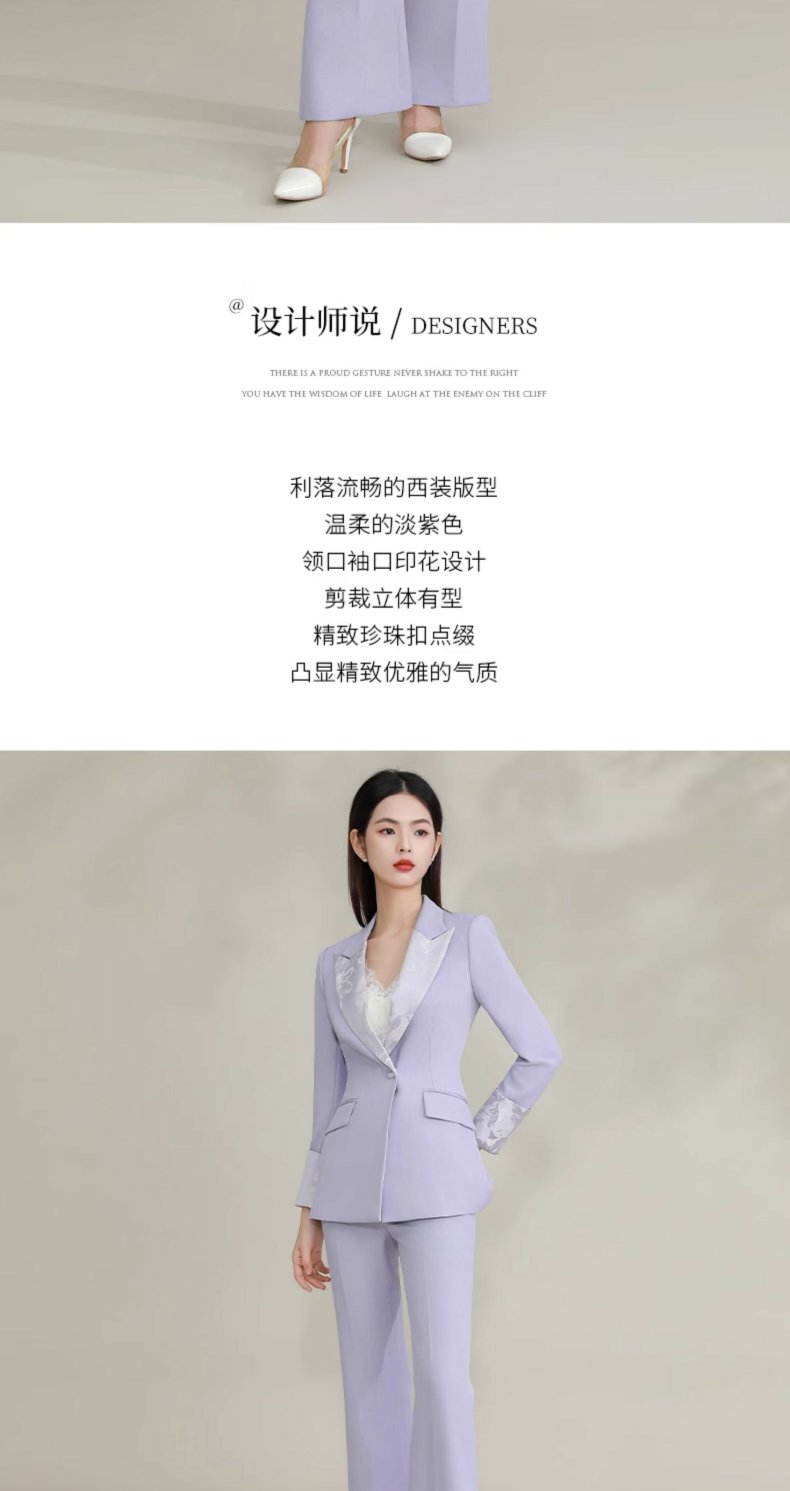 法小曼*子珍/紫色新中式套装时尚播音主持人西装缎领国风年会职业装高级FYCP035