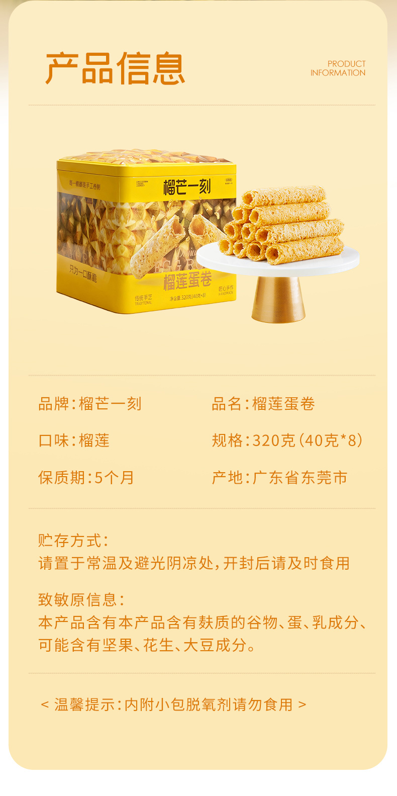 榴芒一刻 榴莲蛋卷 320g/320g*2