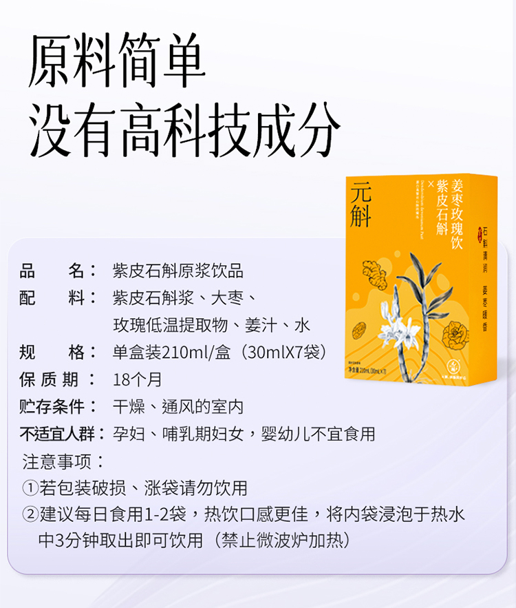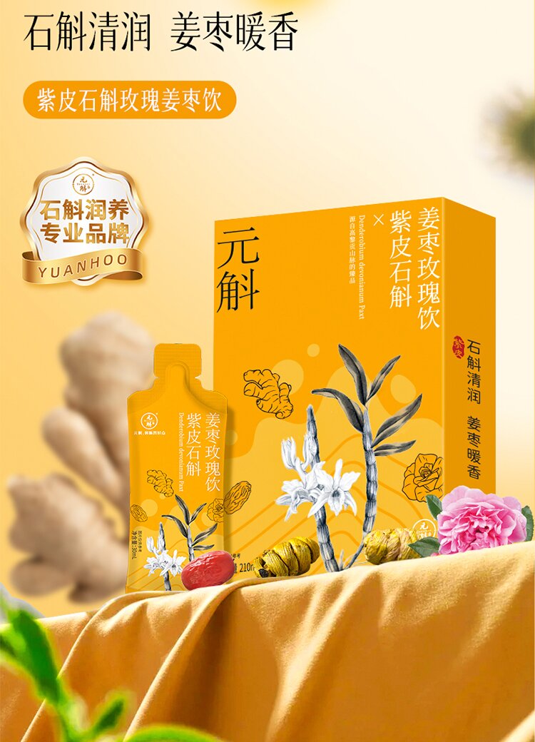 元斛 云南高黎贡山紫皮石斛姜枣玫瑰饮210ml盒装【答摩】