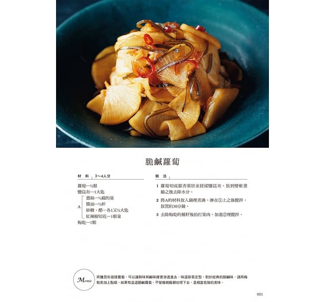 『只需把食材拌上調味料』,作法是種非常簡單而乾脆,對每天作飯或是才剛開始學習料理的人來說,製作起來非常輕鬆,相信絕對可以成為助力。