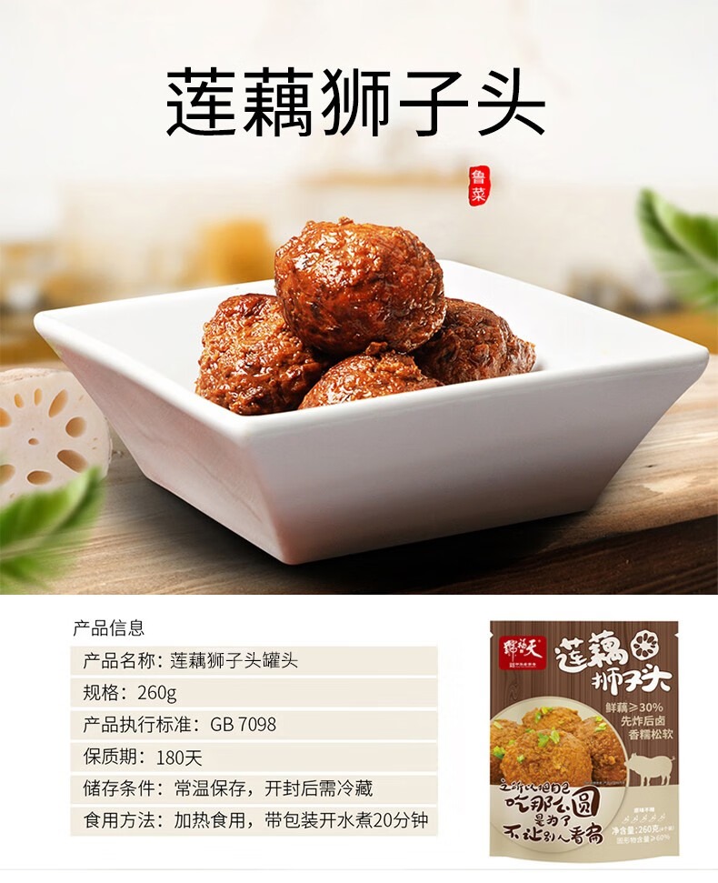 D天福号莲藕狮子头,5袋组合,中华老字号品牌,猪肉鲜香,莲藕脆爽,唇齿留香,在家吃“名厨菜”D