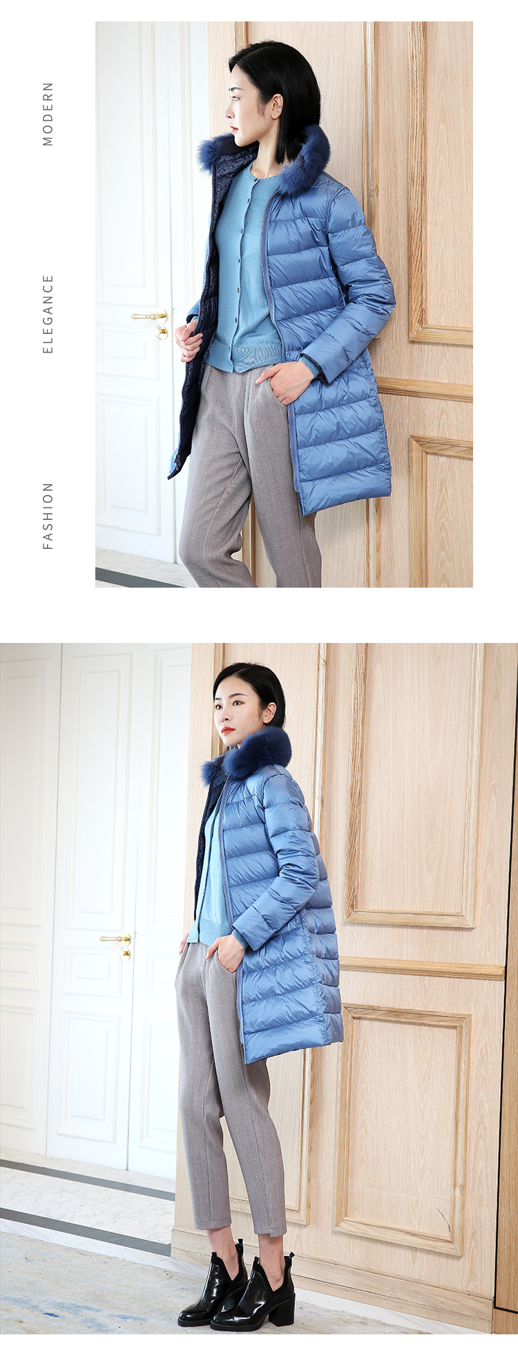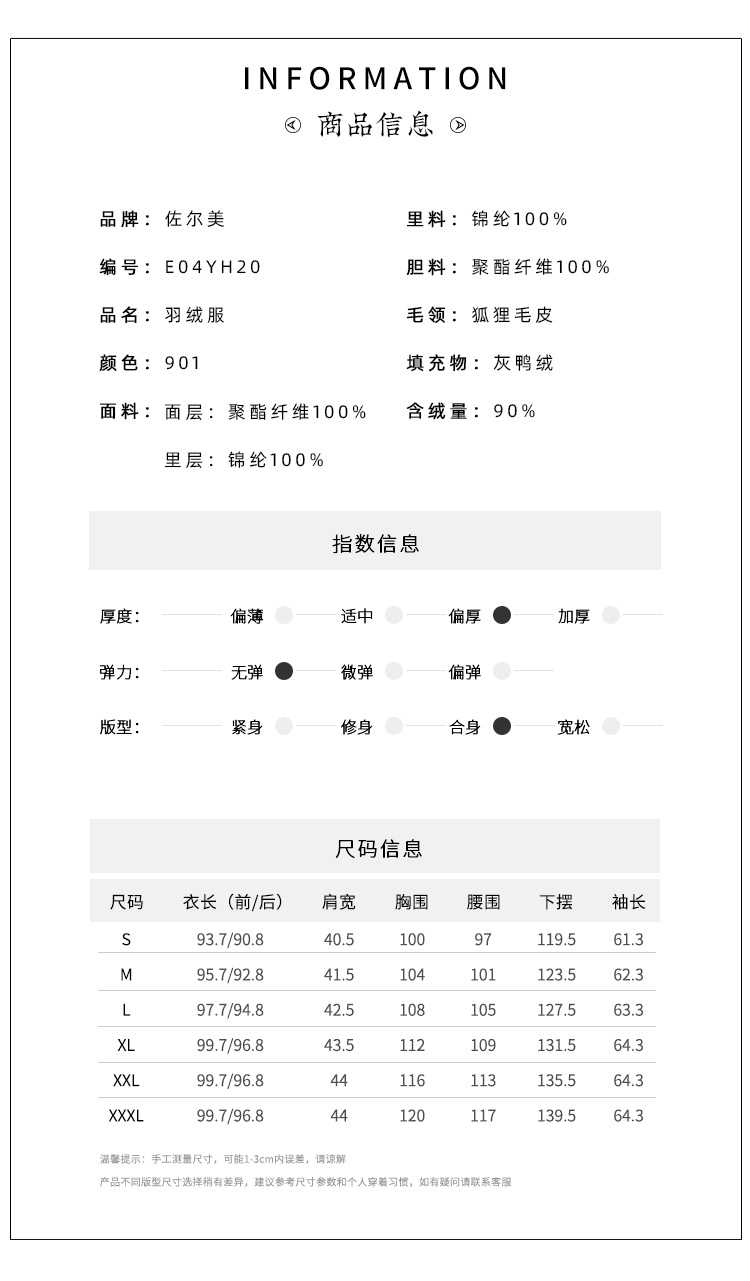 佐尔美2021冬季新款 时尚气质90%高含绒量狐毛领羽绒服女E04YH20