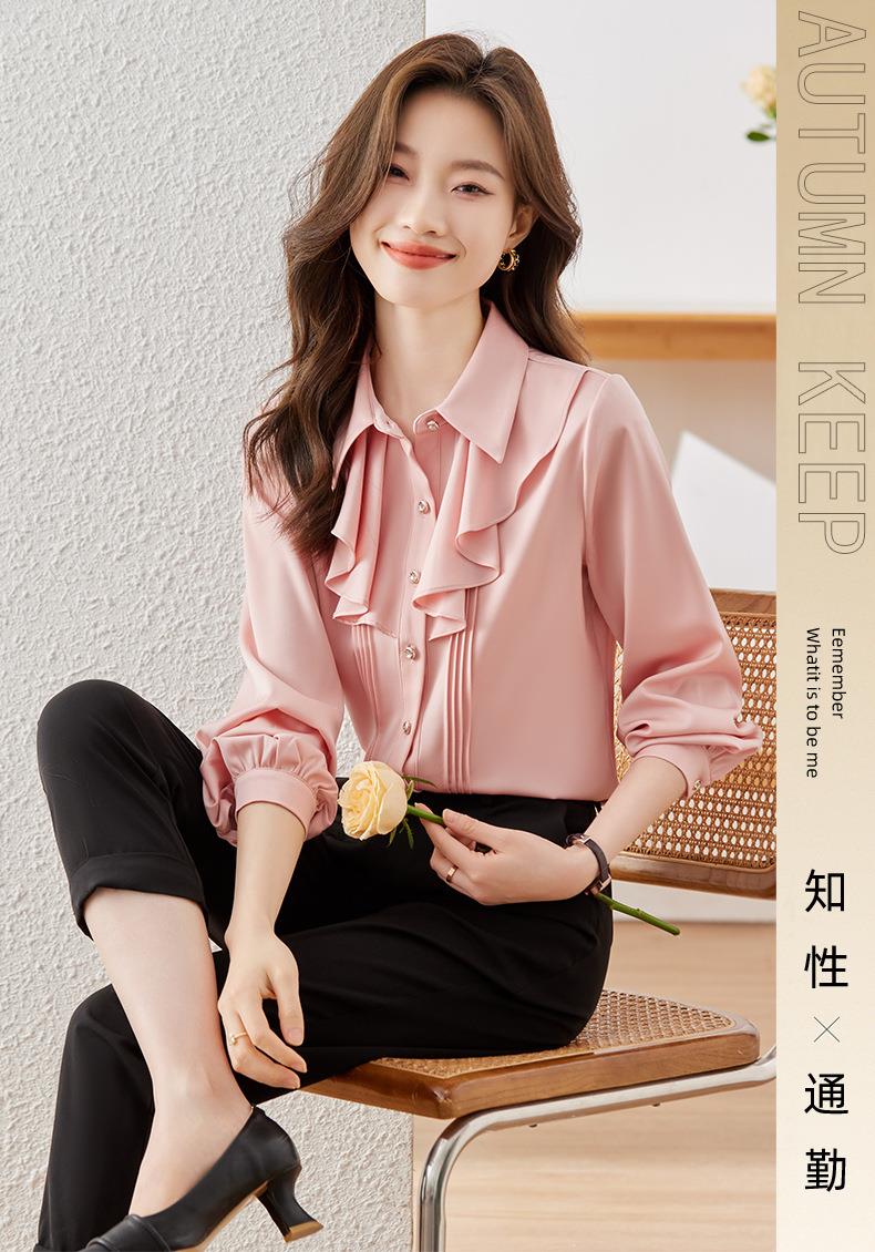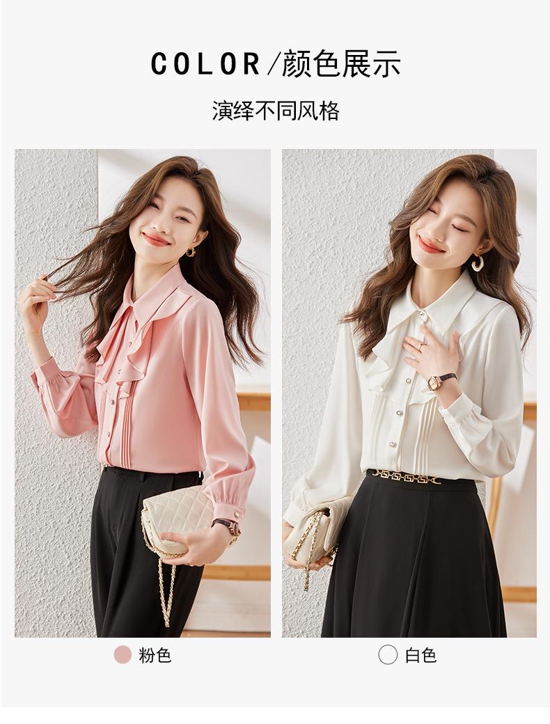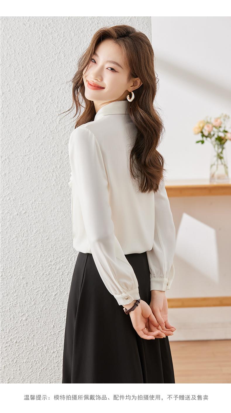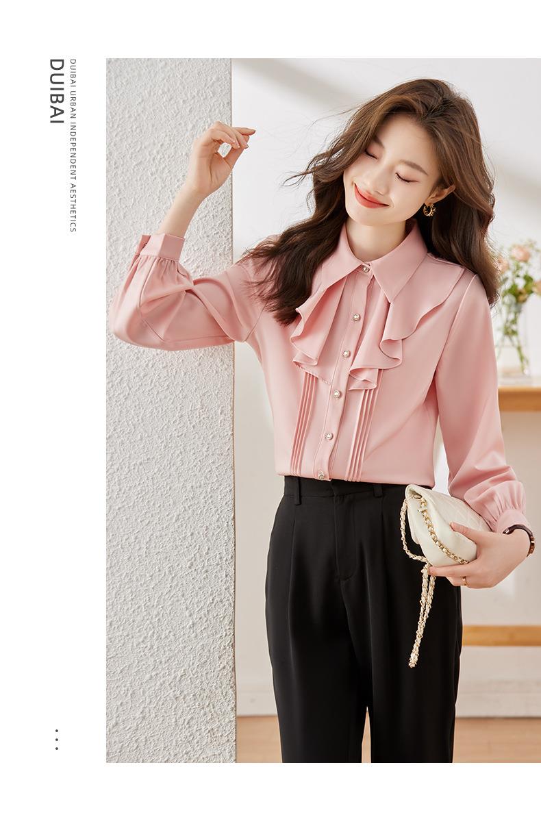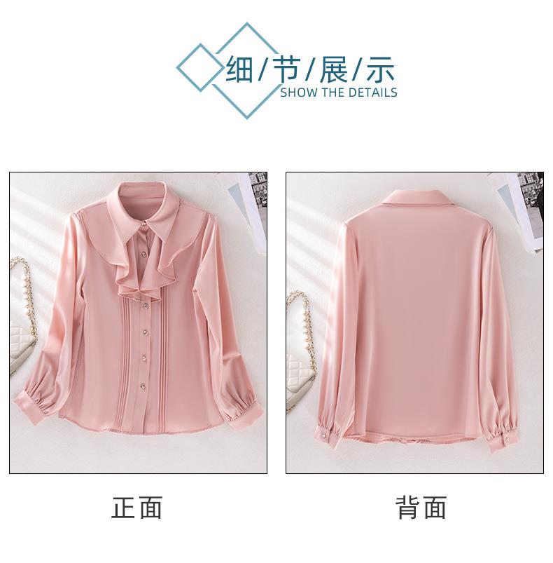 娜璐多 法式名媛洋气粉丝缎面衬衫女2023秋季新款休闲通勤百搭长袖衬衣女