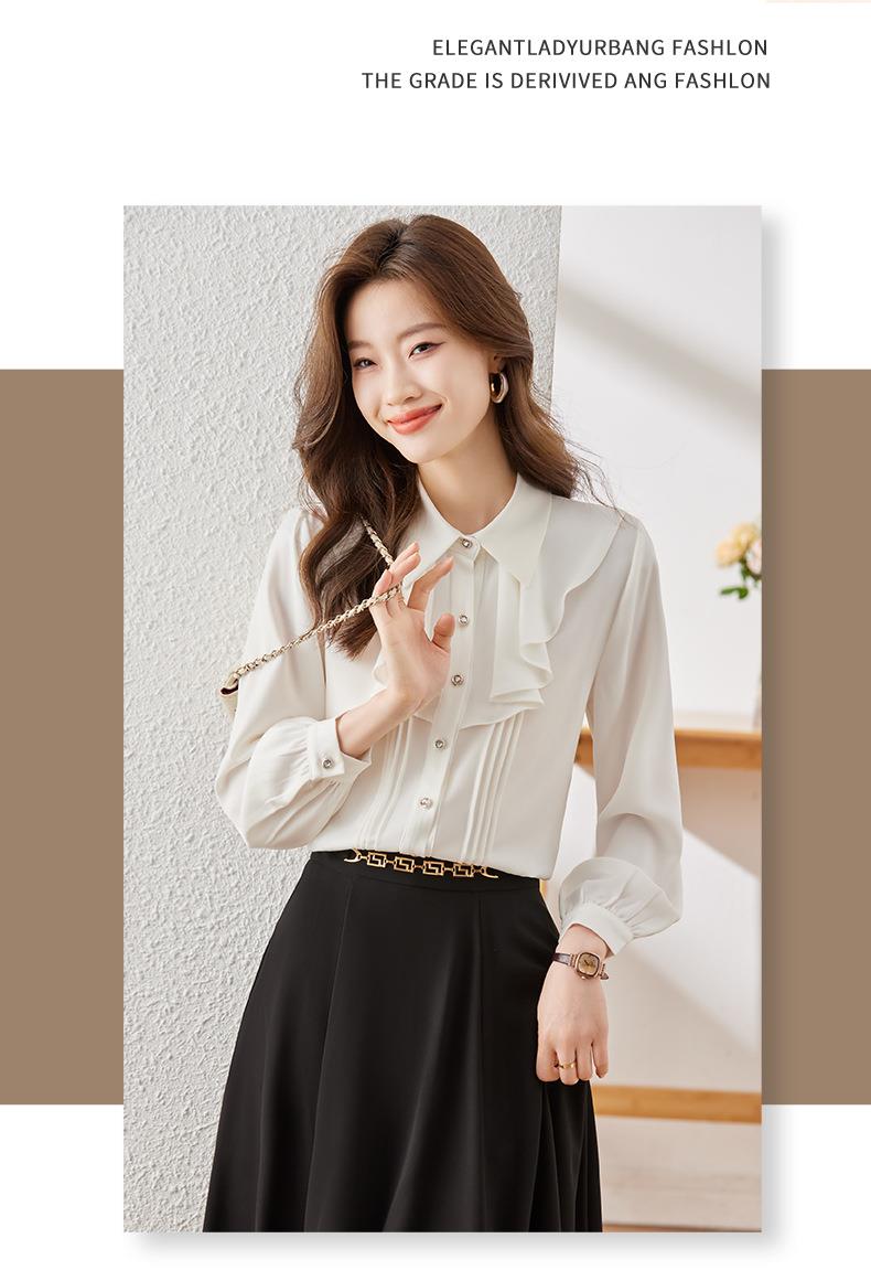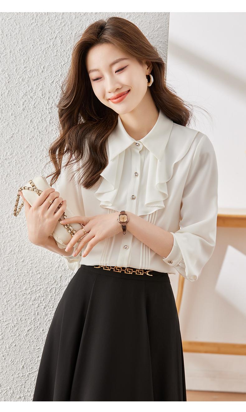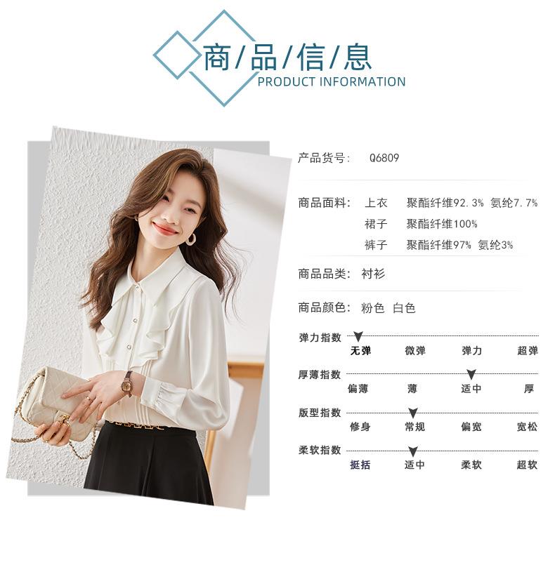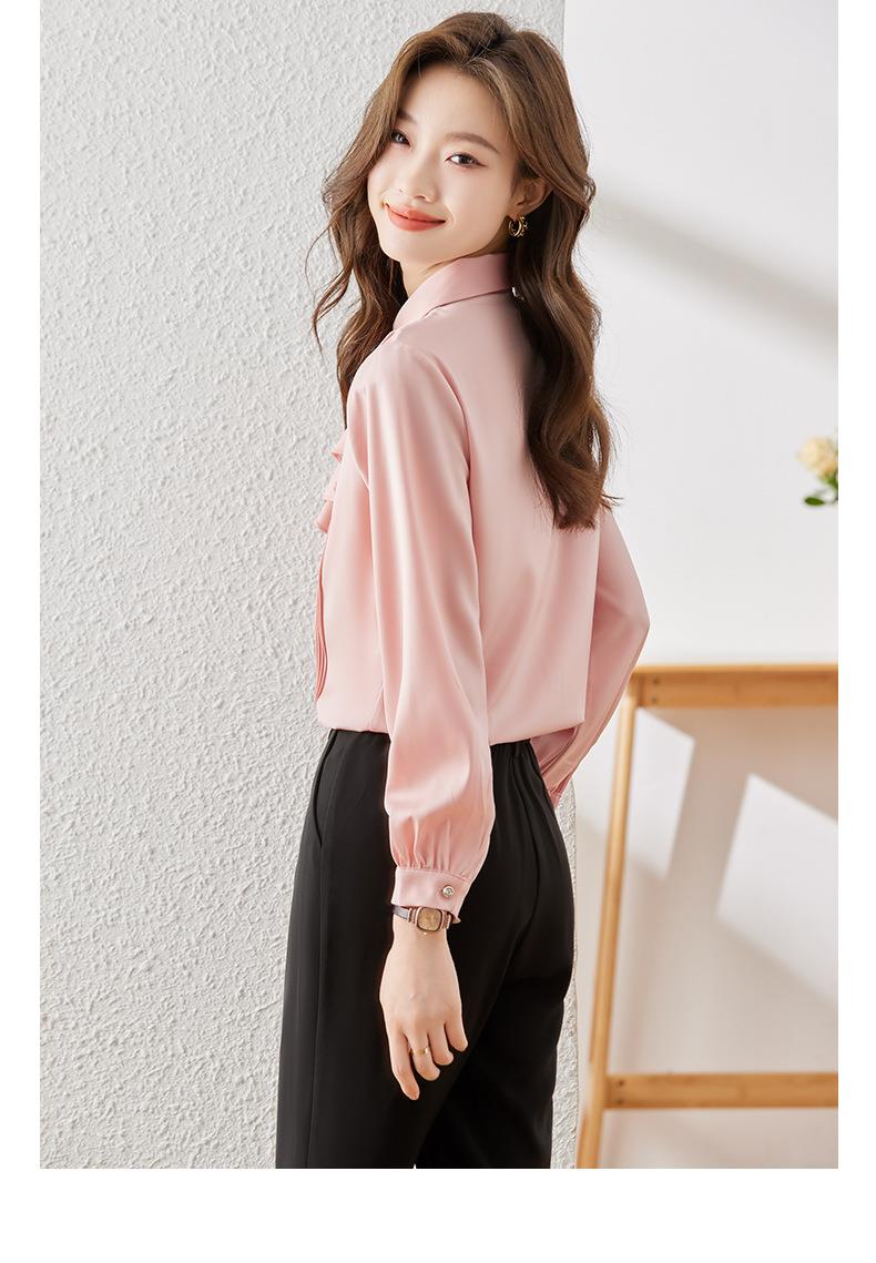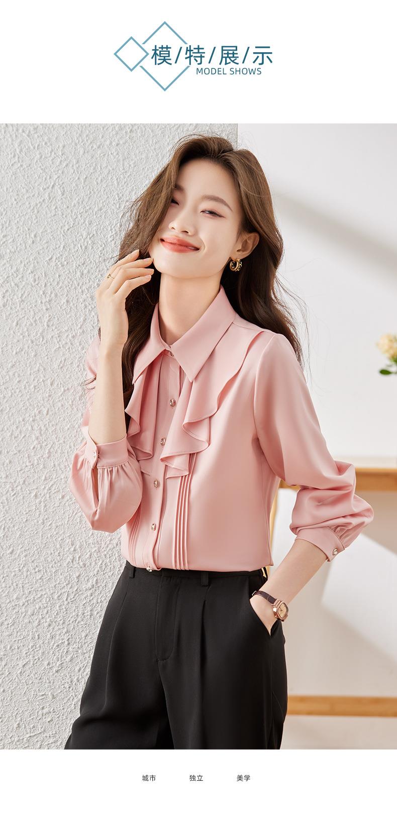 娜璐多 法式名媛洋气粉丝缎面衬衫女2023秋季新款休闲通勤百搭长袖衬衣女