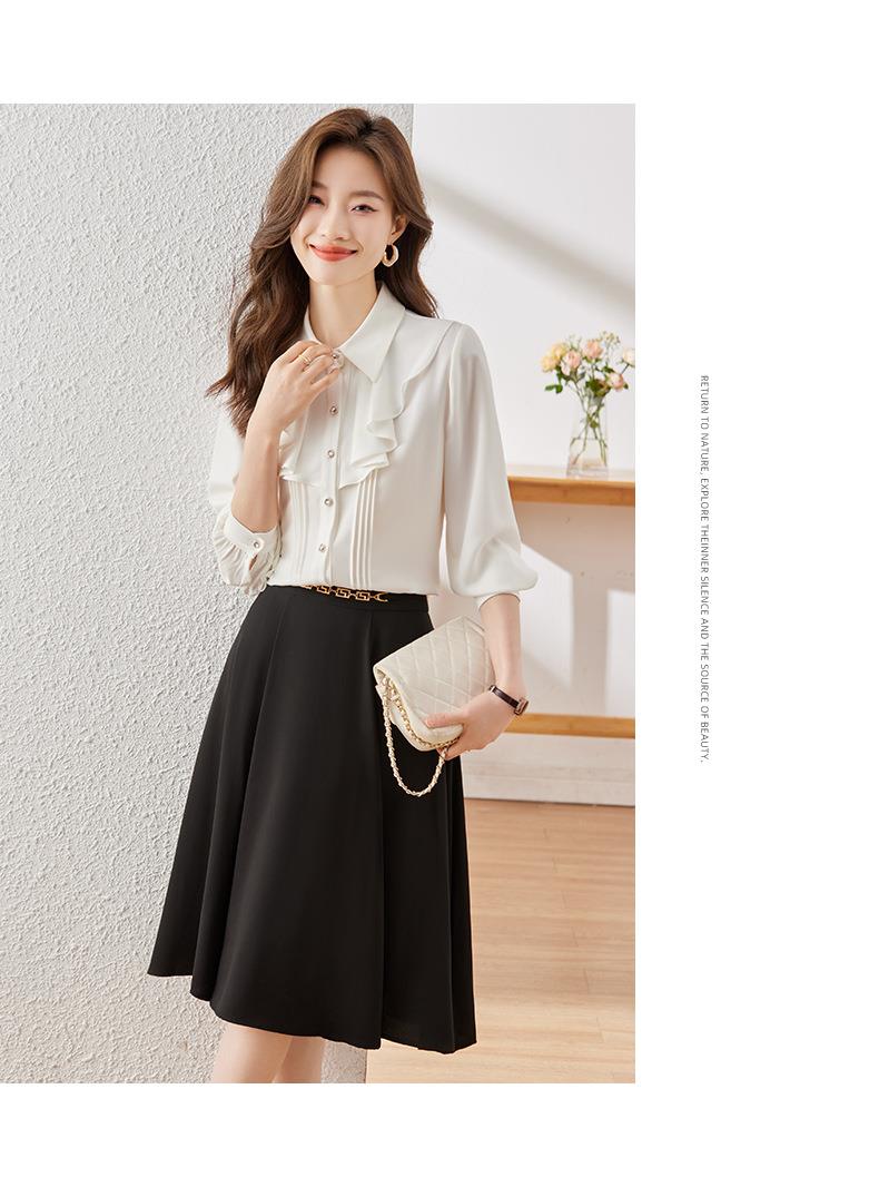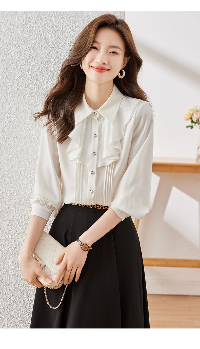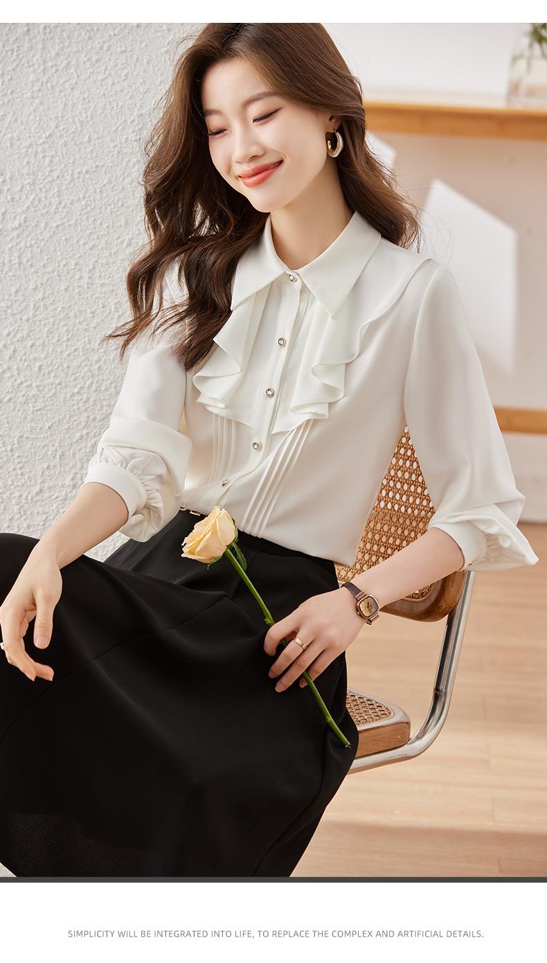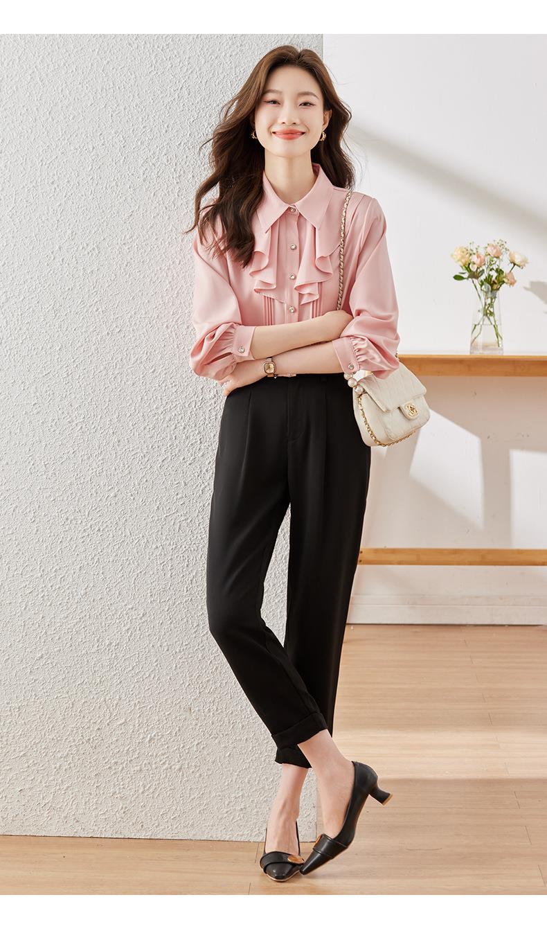 娜璐多 法式名媛洋气粉丝缎面衬衫女2023秋季新款休闲通勤百搭长袖衬衣女