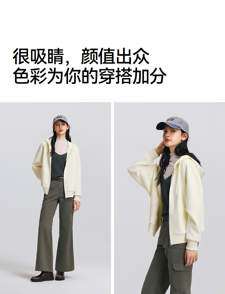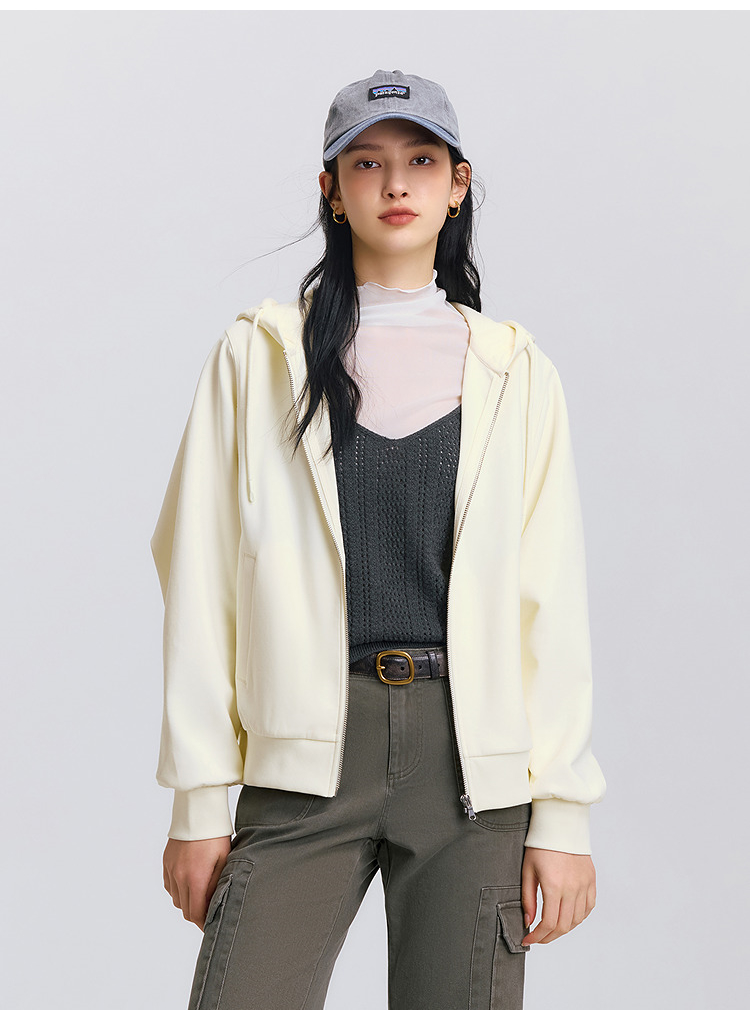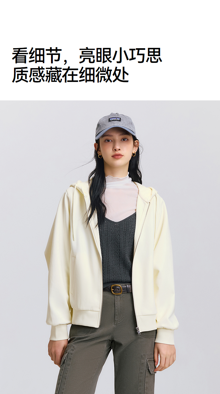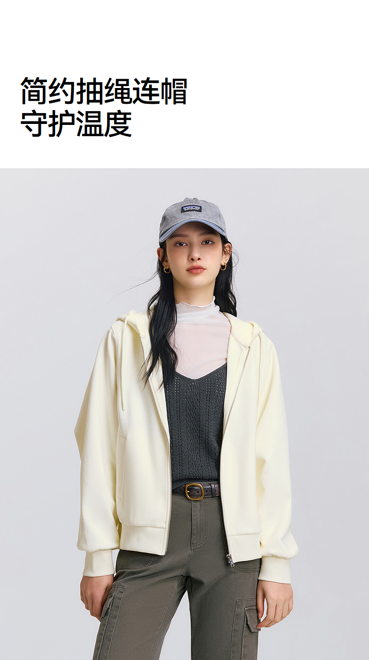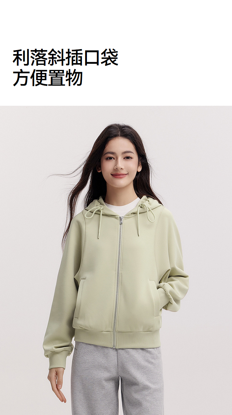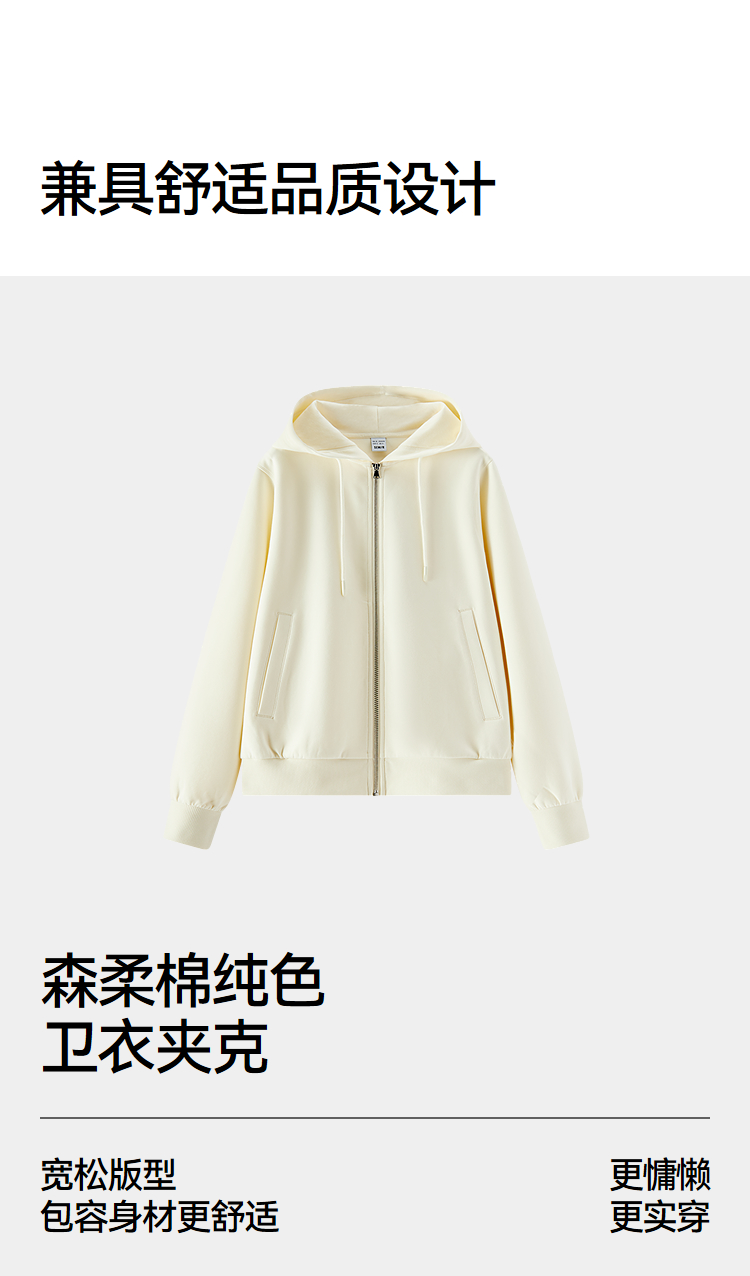 森柔|森马外套女春季连帽纯色宽松夹克慵懒风ins潮温柔系百搭衣服