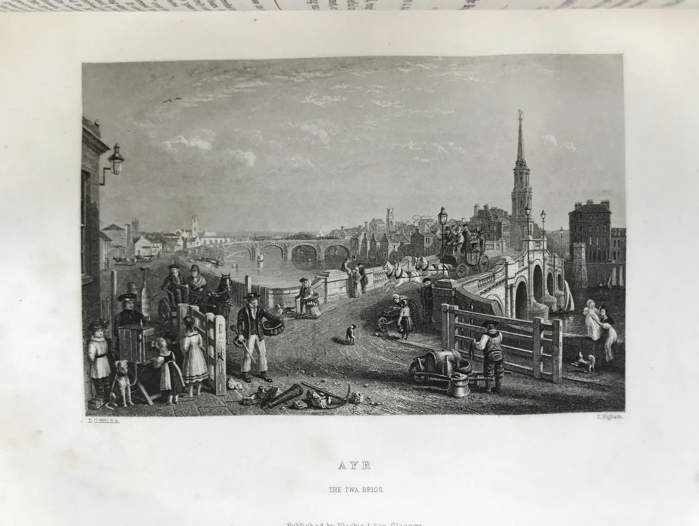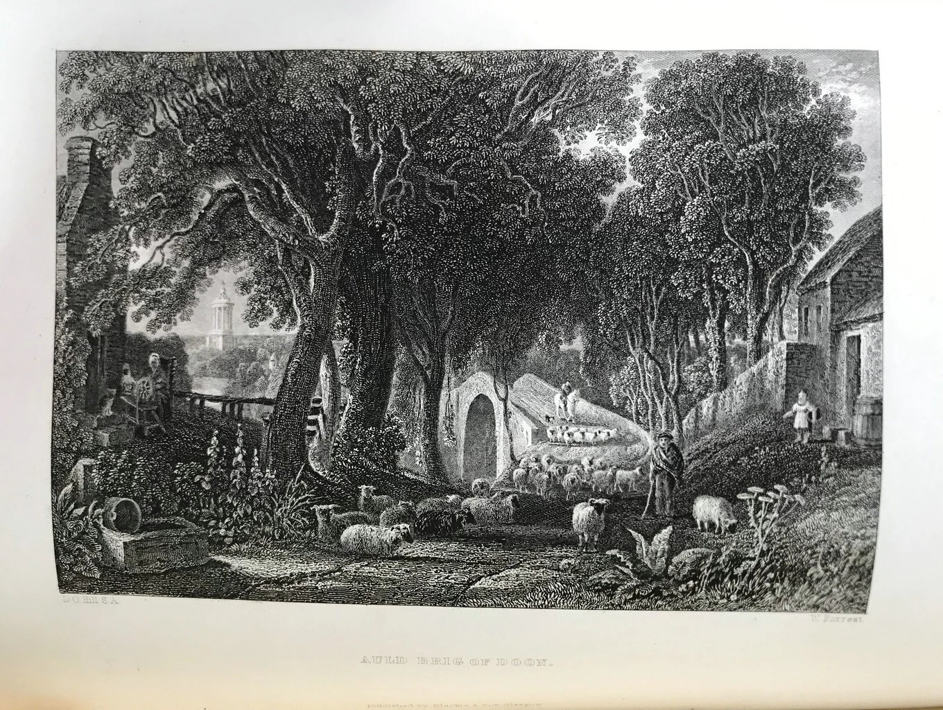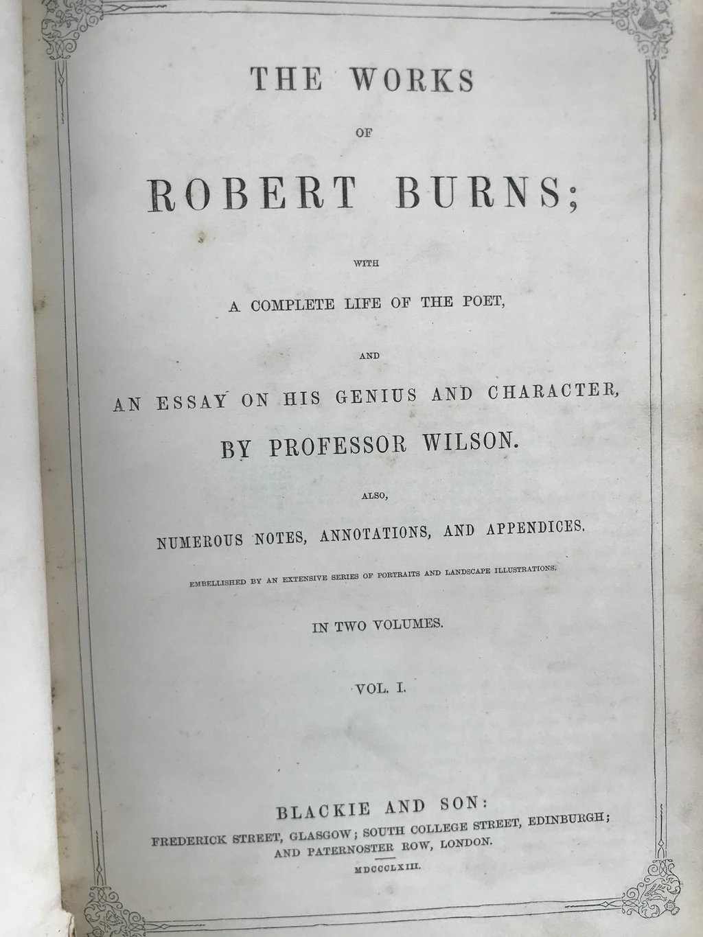 1863年 彭斯作品全集(全2卷) 数十幅版画插图 真皮精装16开