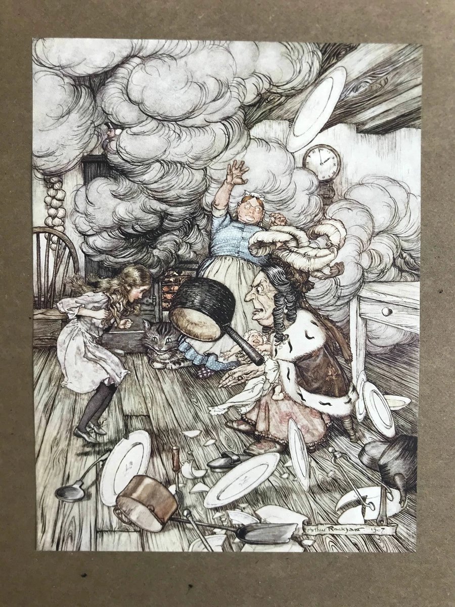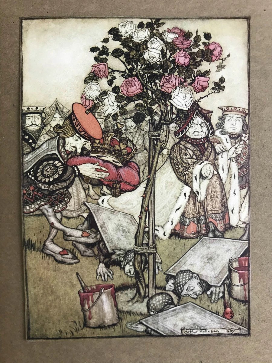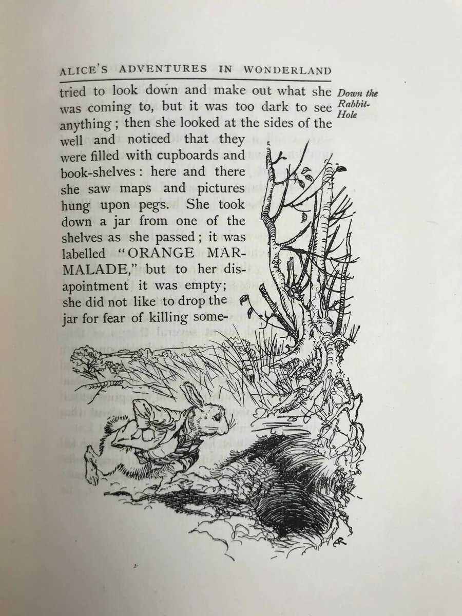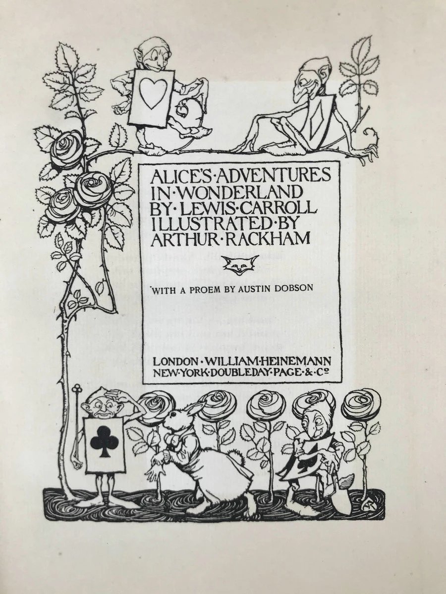 限量版!含藏书票!约20世纪早期 爱丽丝梦游仙境 鬼才拉克姆13幅彩色手工贴图与大量黑白文间插图 漆布精装大16开
