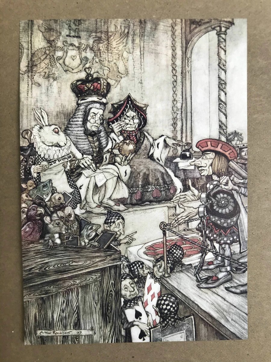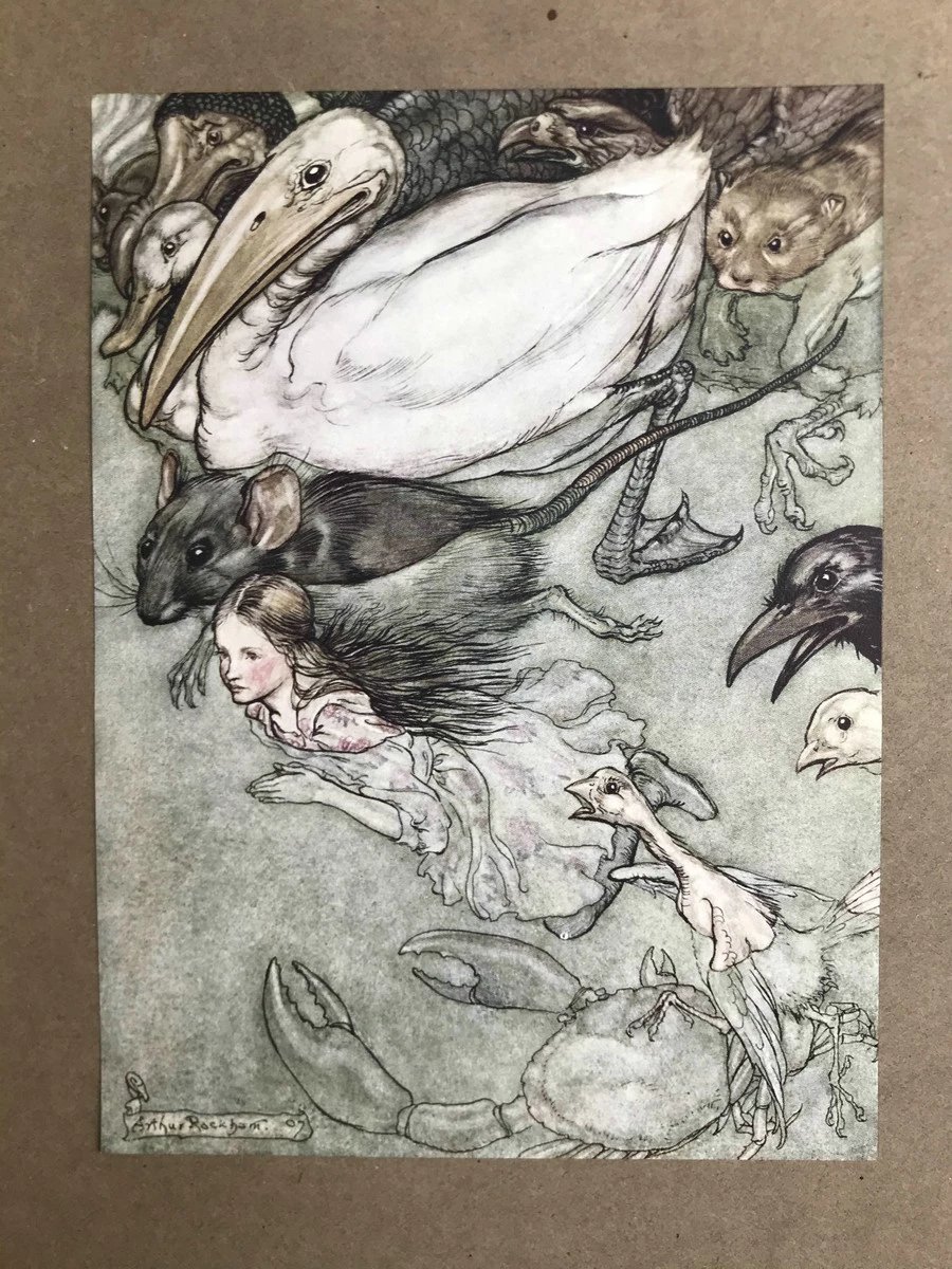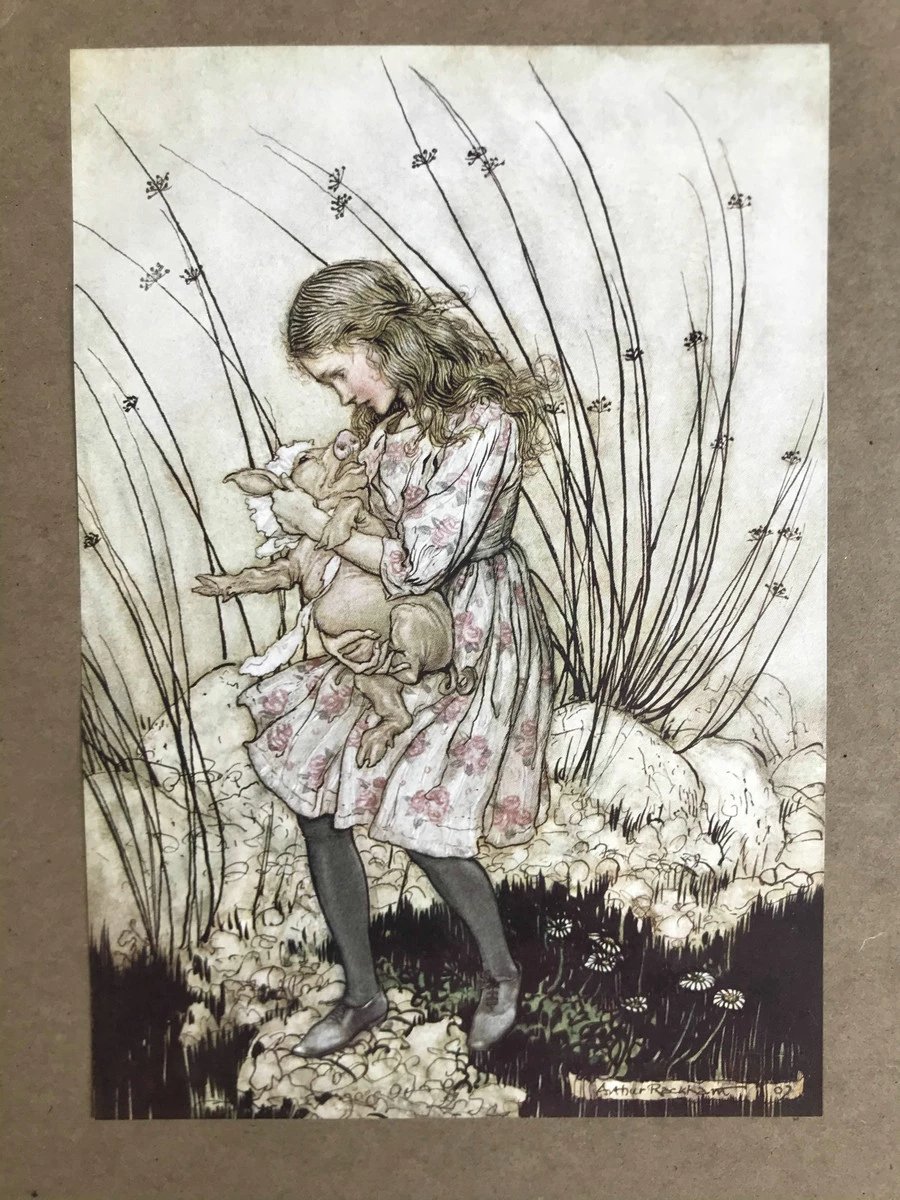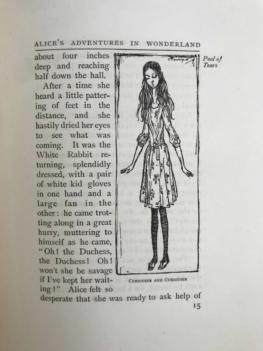 限量版!含藏书票!约20世纪早期 爱丽丝梦游仙境 鬼才拉克姆13幅彩色手工贴图与大量黑白文间插图 漆布精装大16开