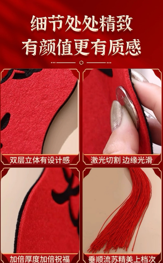🌸点缀美好生活 让家更温馨 为您的家增添独特韵味 让邻里羡慕不已! 加厚毛毡 经久耐用‼️ 精准切割 雕花细致 ❄️双层绒布 喜气洋洋 实物非常好看,材质很厚实⛄️