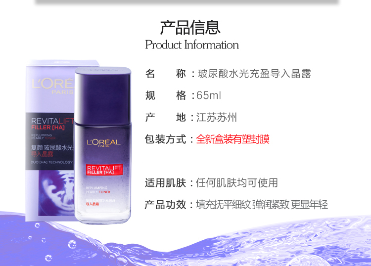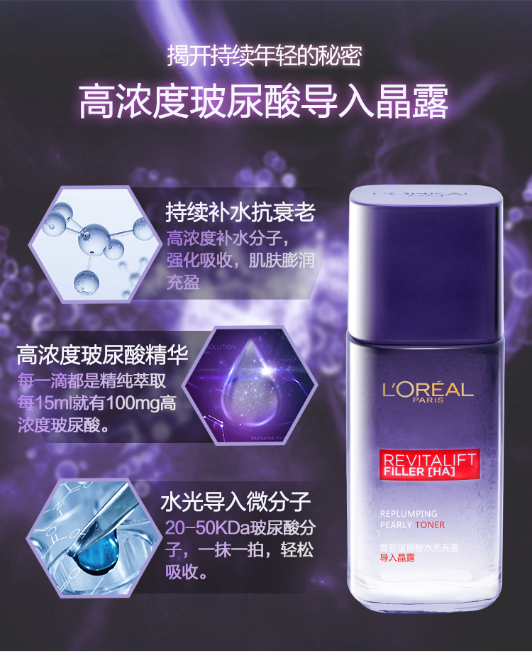 欧莱雅复颜玻尿酸水光充盈导入晶露65ml(221179)