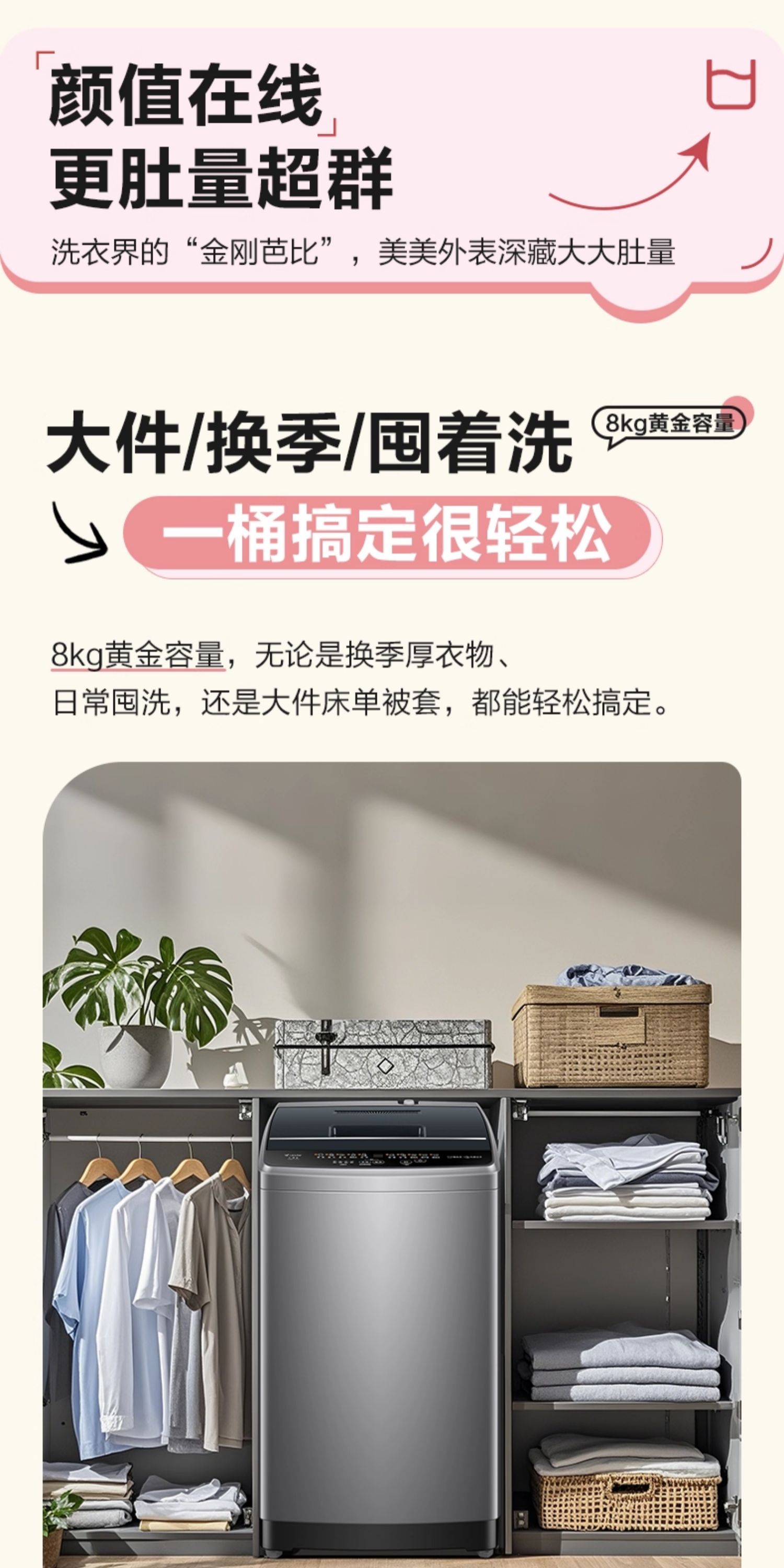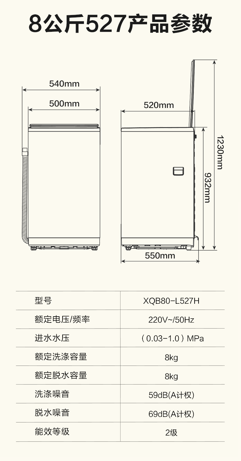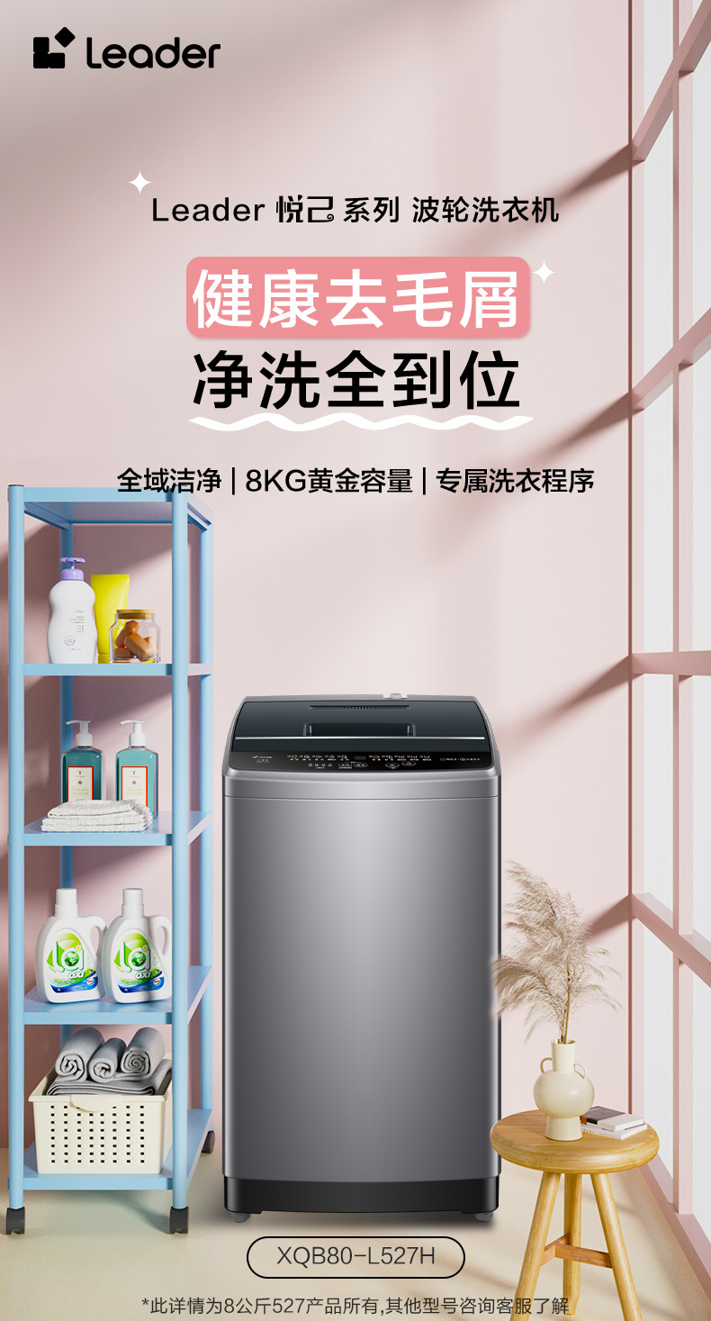 海尔智家Leader/统帅大容量8kg家用全自动波轮洗衣机洗脱一体527