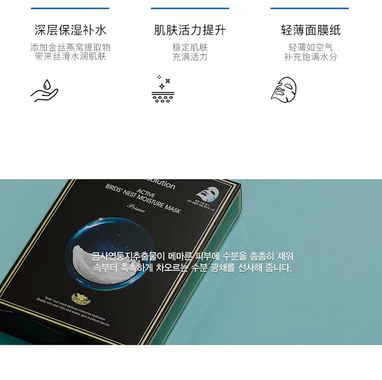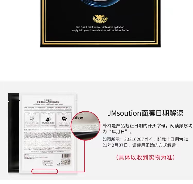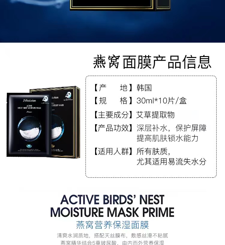 JMsolution燕窝保湿补水面膜 10片/盒深层补水保湿紧致修护