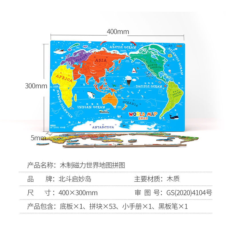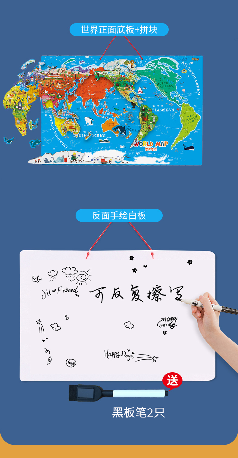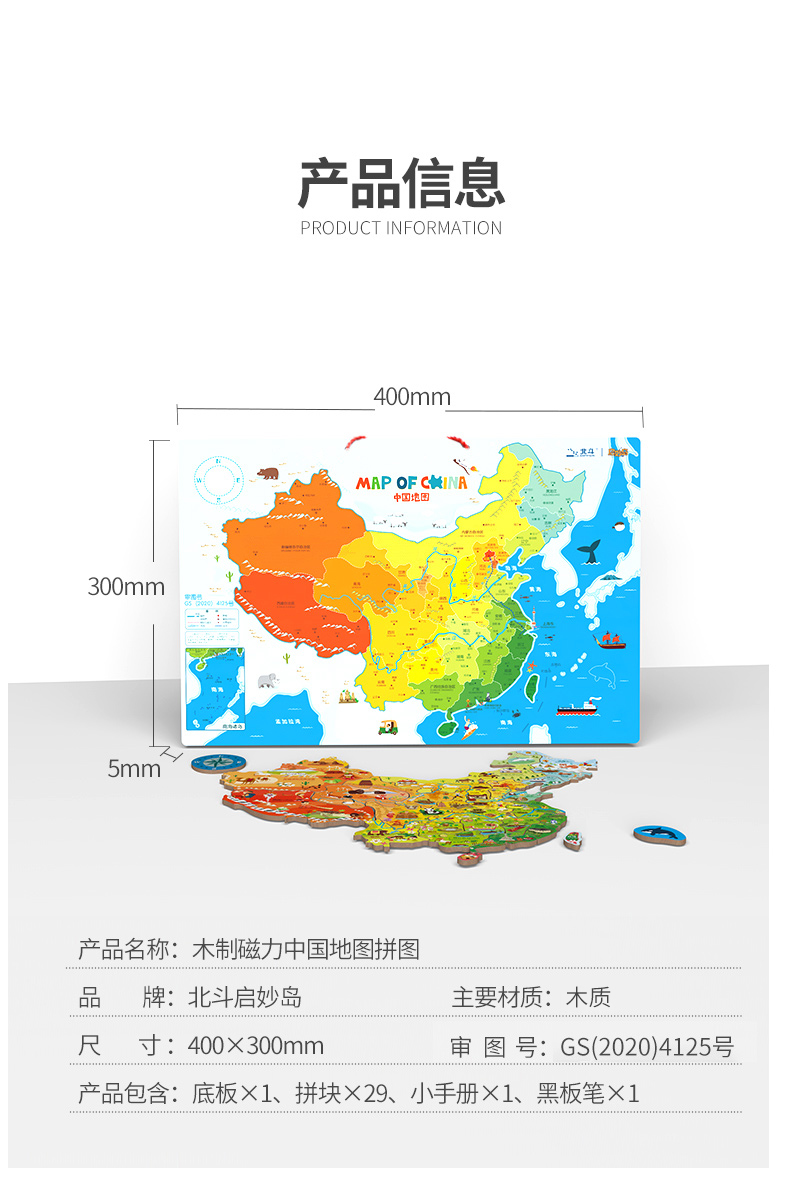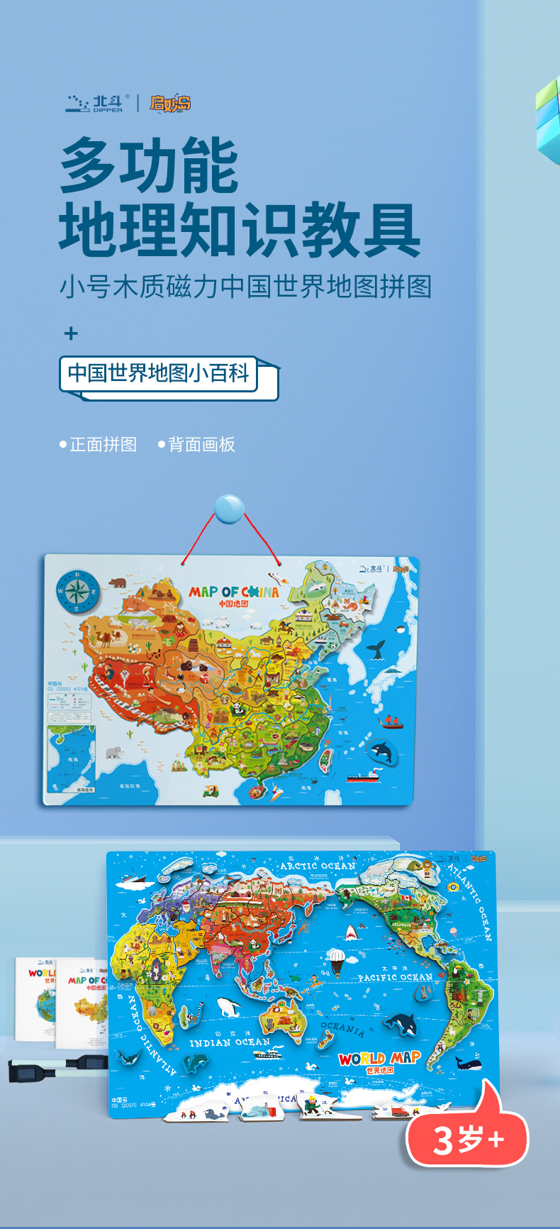 木质磁力地图拼图·中国+世界地图套装 (分仓发货)