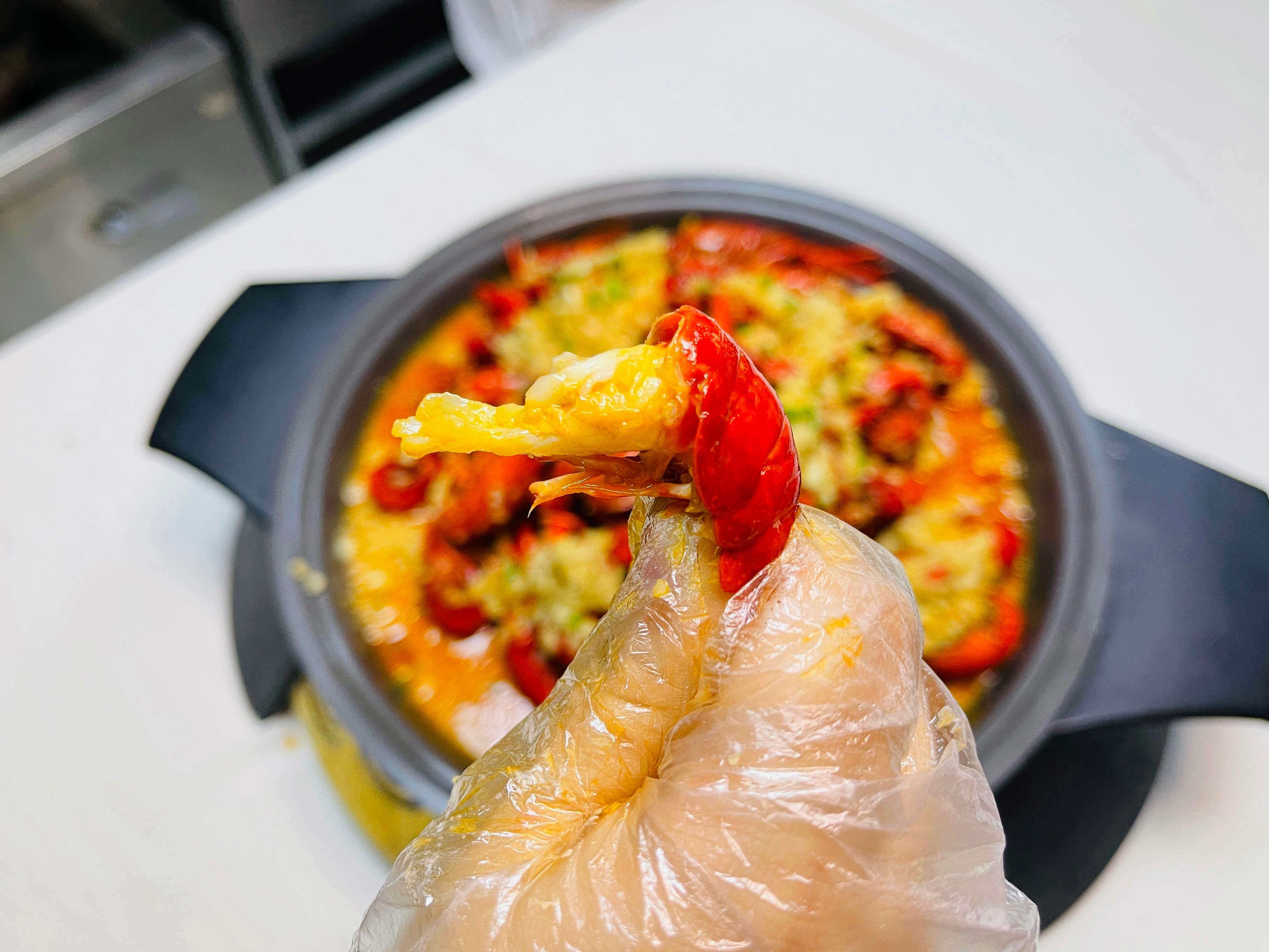 小龙虾上面的蒜汁一定要先嗦一嗦,鲜到眉毛也要掉下来,经过熬制的蒜蓉金汤一点都不会有蒜的冲味,浓郁且清爽~