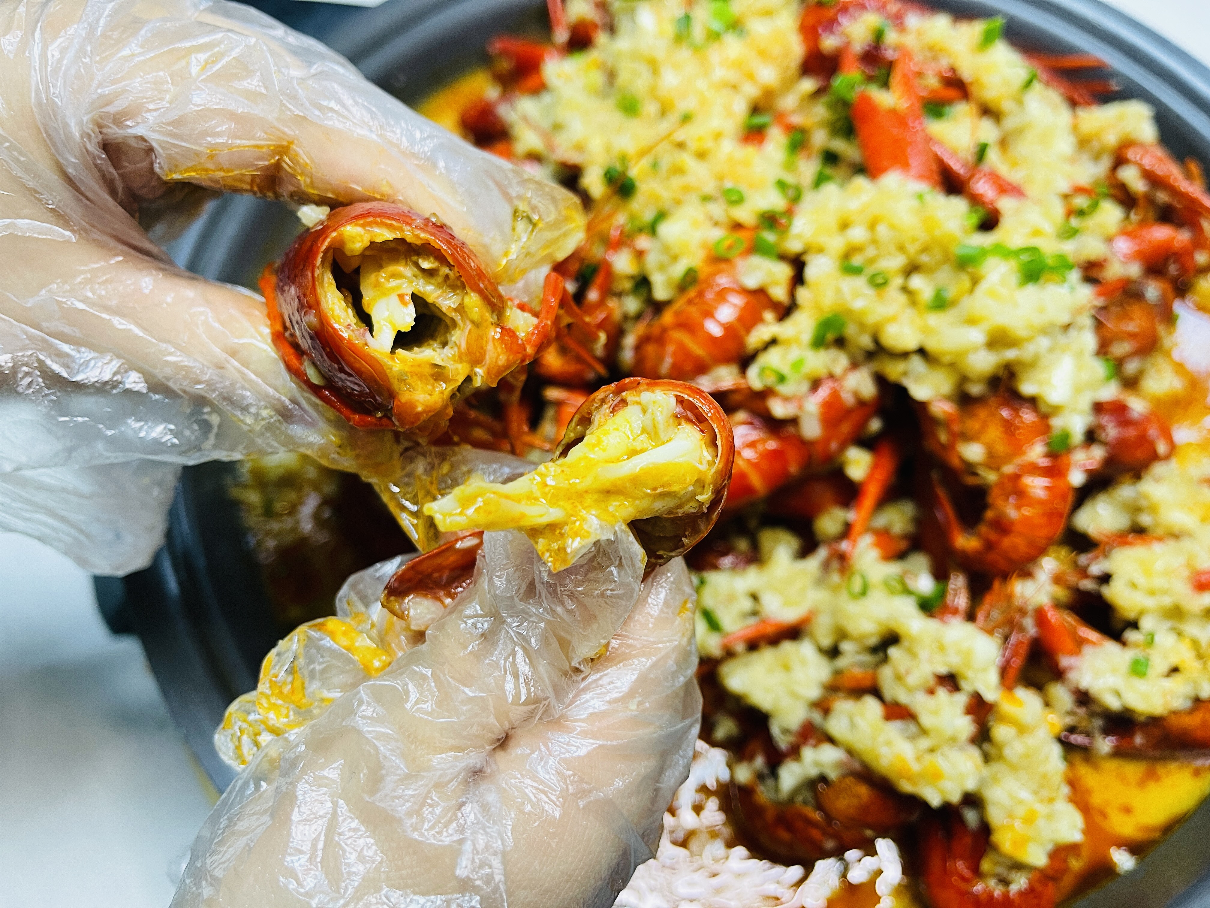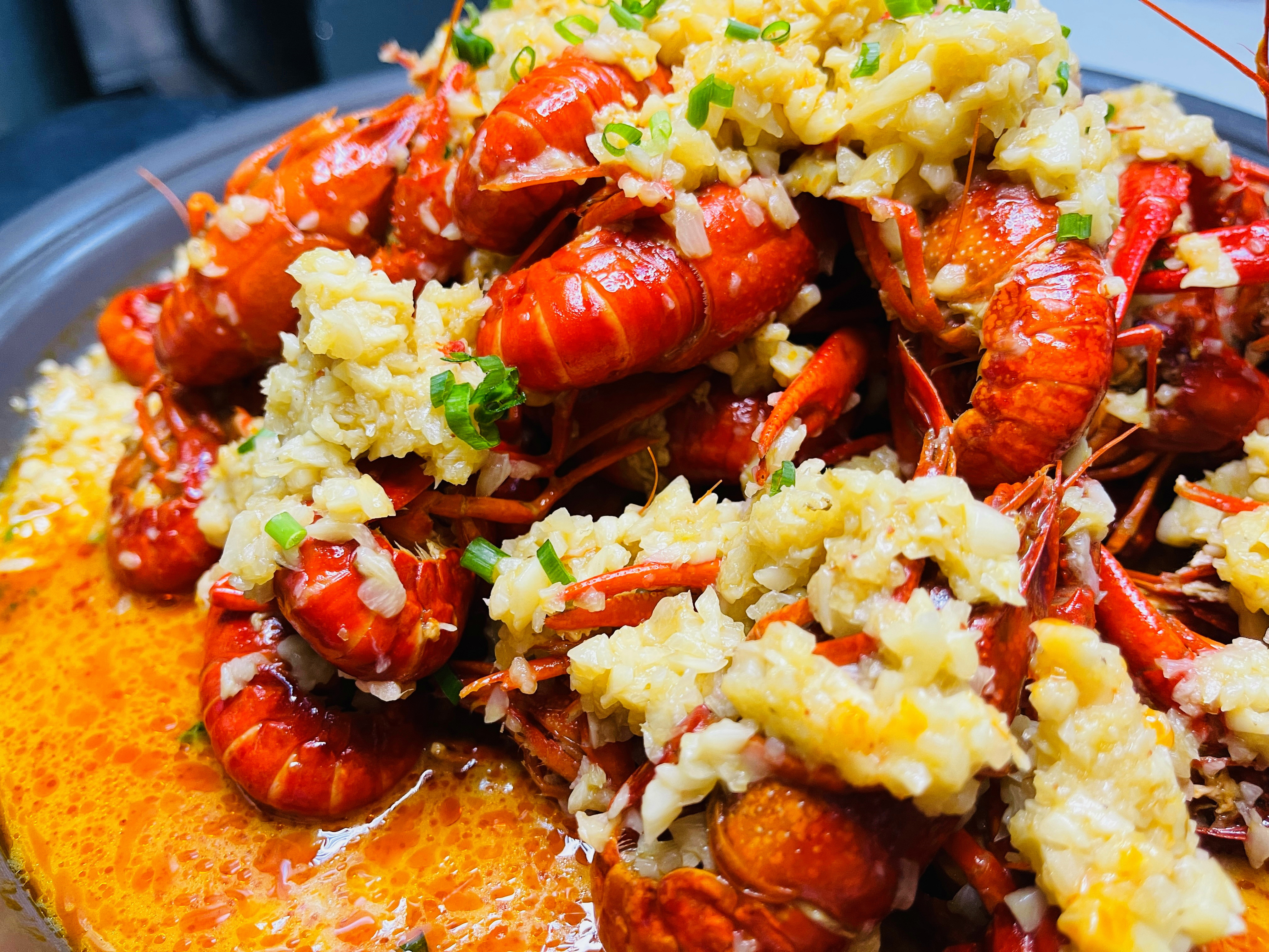 黄金蒜蓉多的堆成小山,蒜蓉犹如"瀑布"倾泄而入,将小龙虾包裹,小龙虾掩映其中,蒜香紧紧包裹着虾身,超级入味。经过蒜蓉360度无死角沐浴,把人撩拨得意志力彻底崩塌。