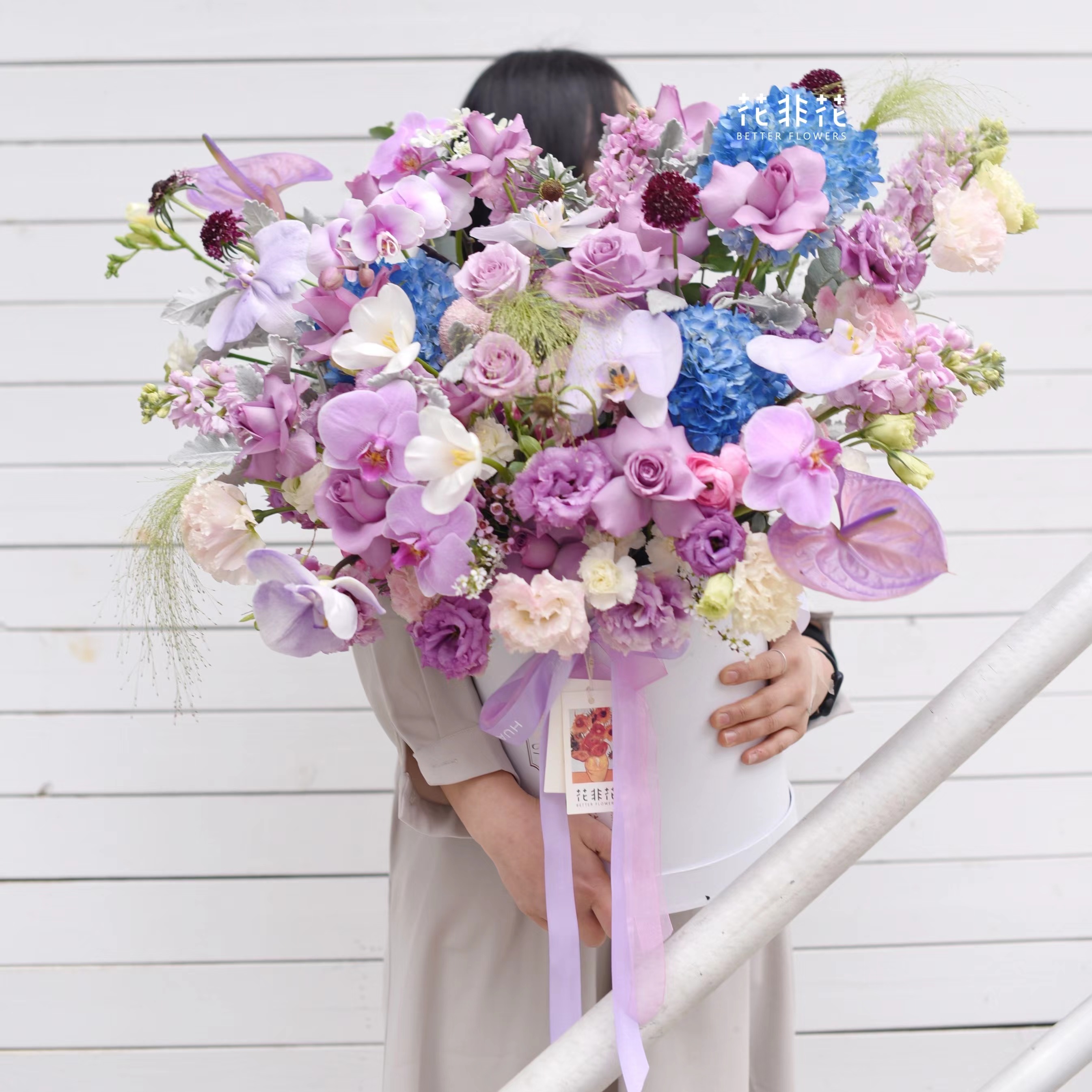 《春光不及你温柔》温柔紫蝴蝶兰郁金香混搭抱抱桶