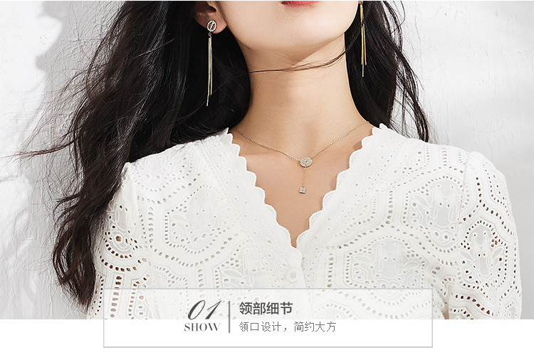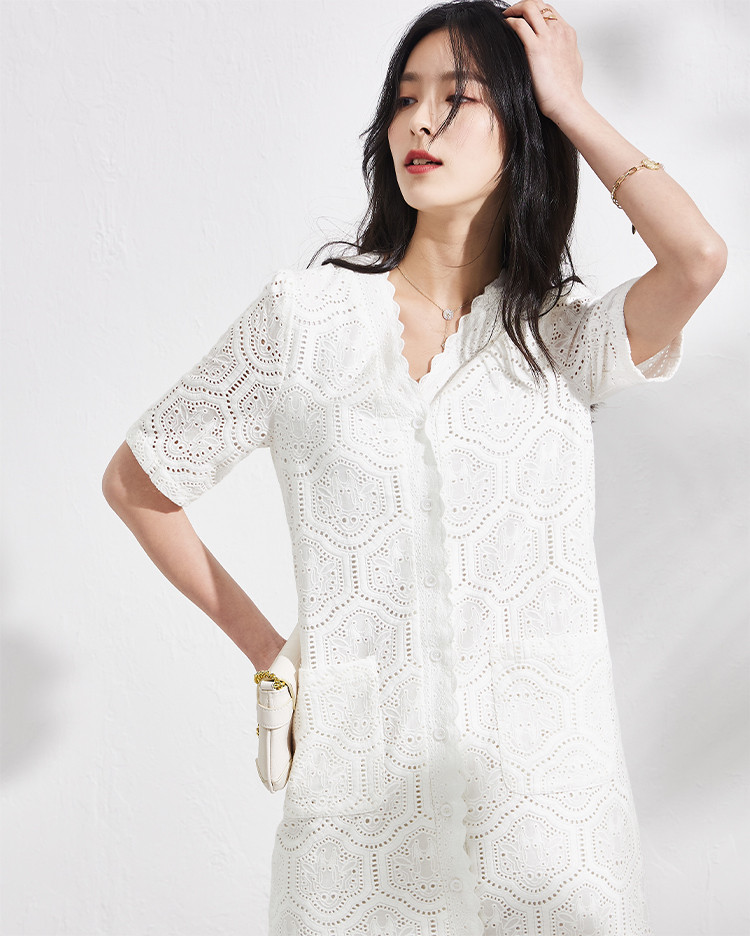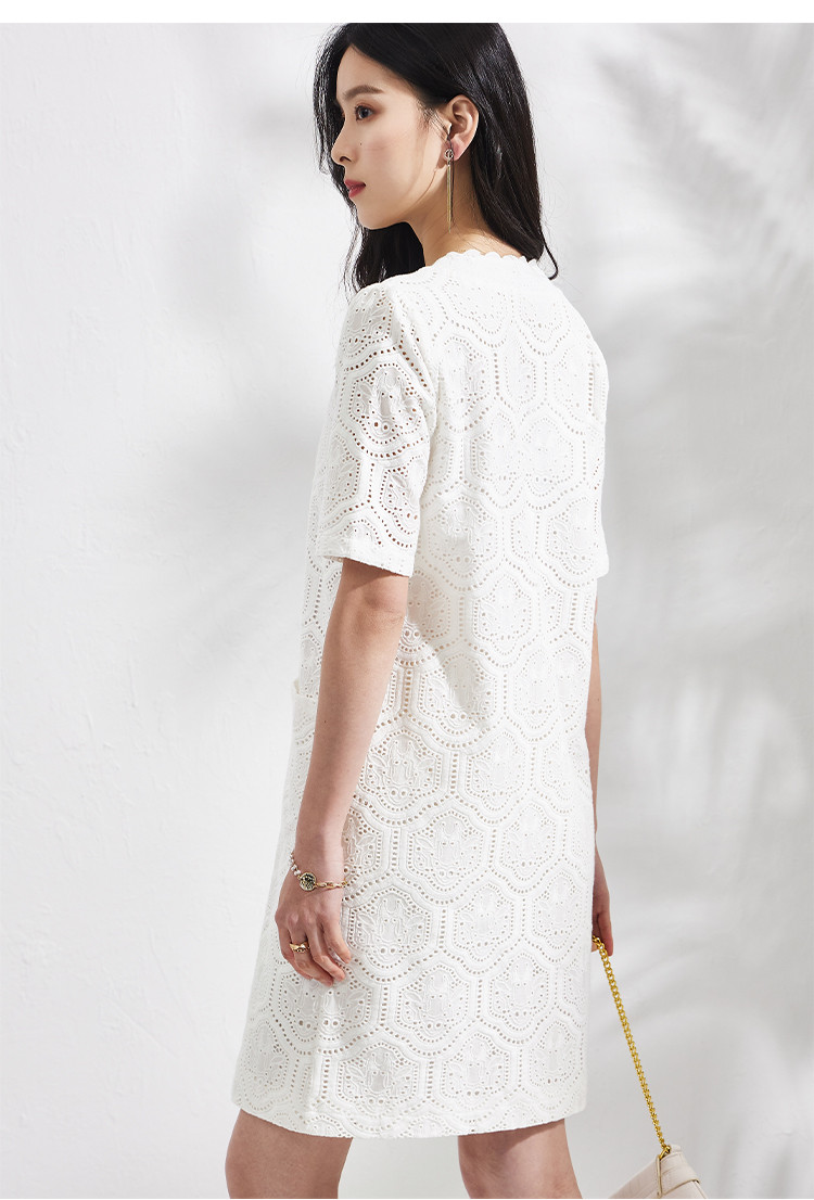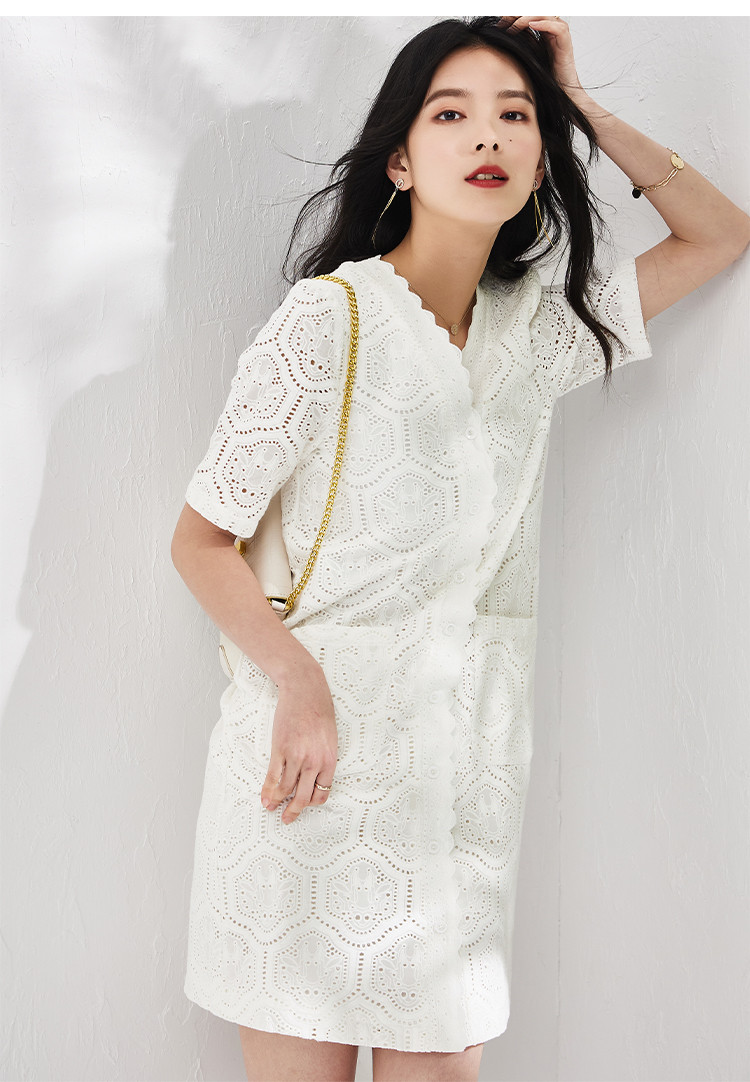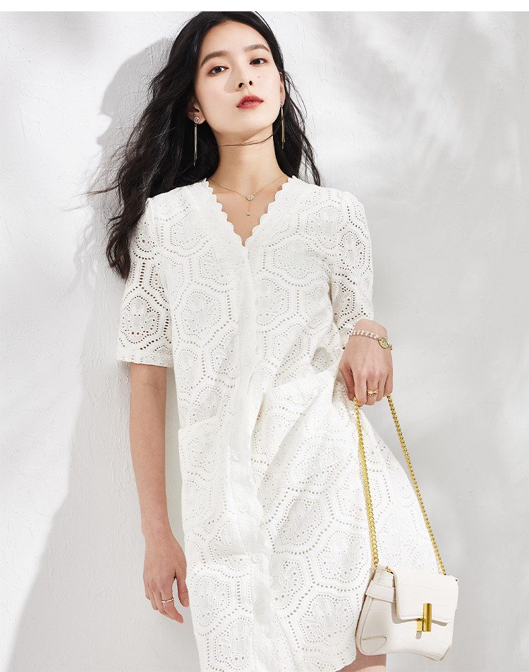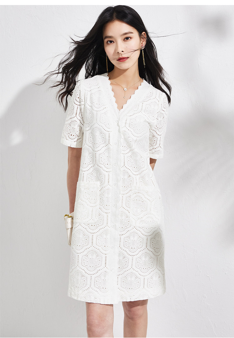 芳外镂空蕾丝开衫裙2夏季新款镂空蕾丝淑女V领开衫连衣裙
