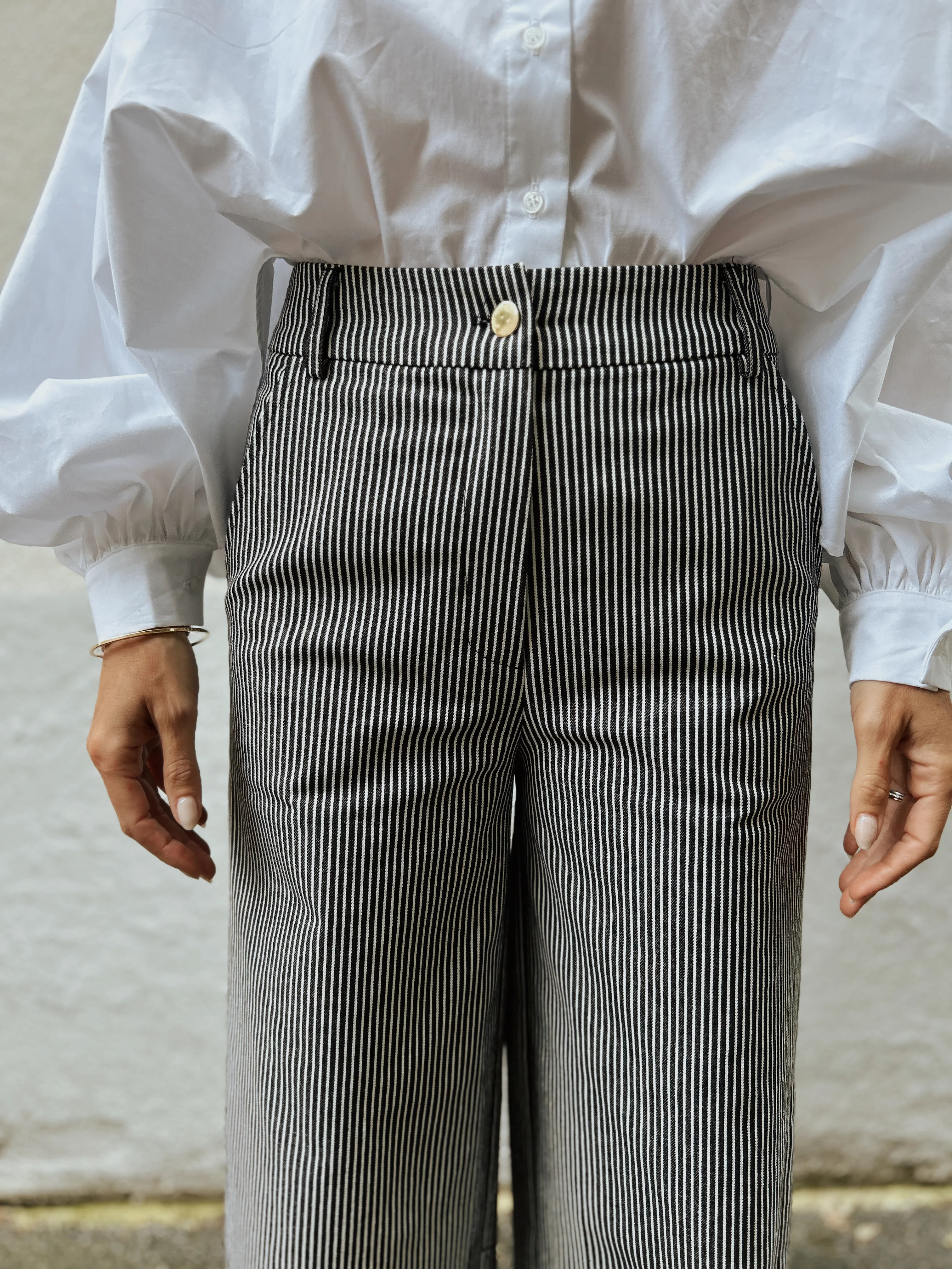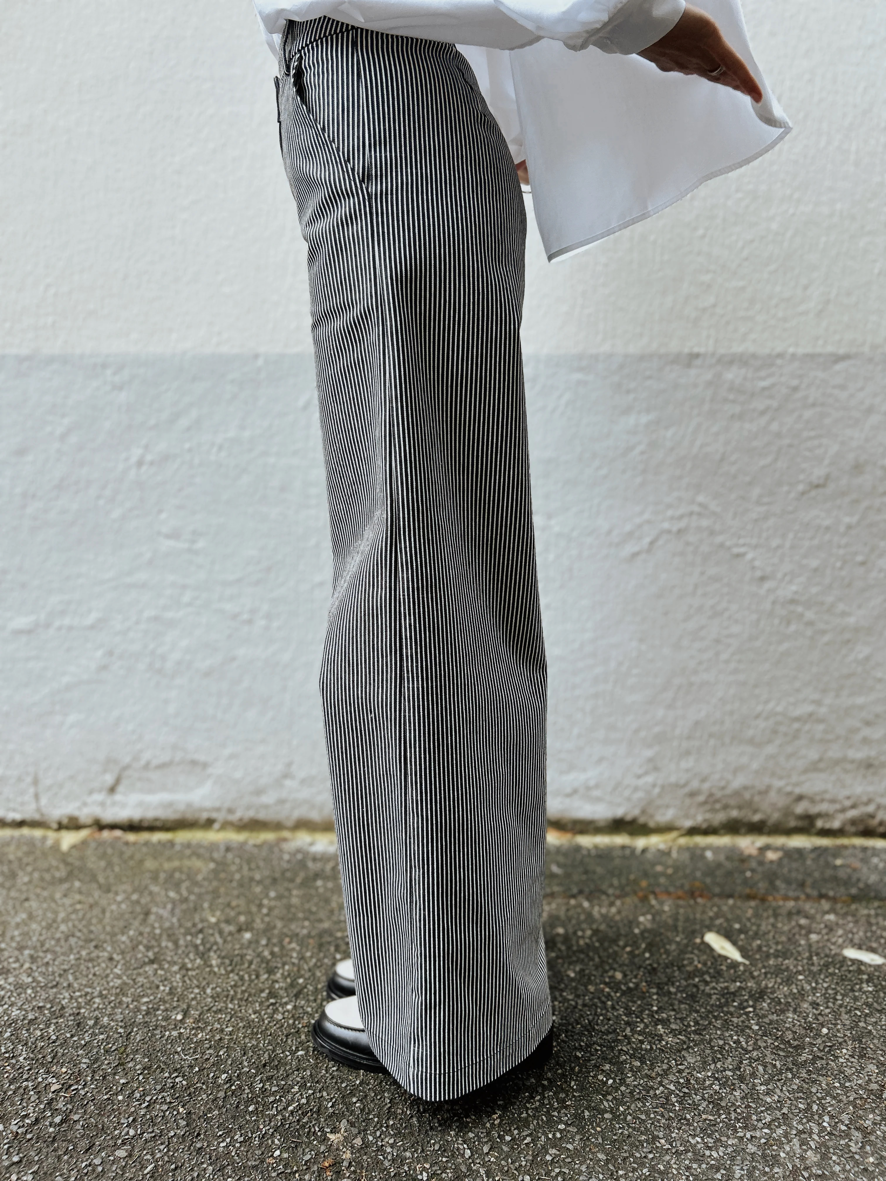 TYNVIE 不对称领口大插袋西装 - 黑白宽纹