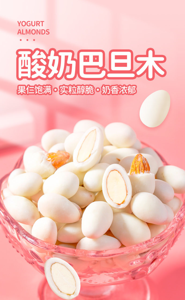 【舌尖上的满足!酸奶巴旦木】粒粒饱满,看得见的果仁!外软里酥,入口即化,奶味十足!奶酪手工夹心新疆特产坚果坚果奶豆休闲散装零食-健康