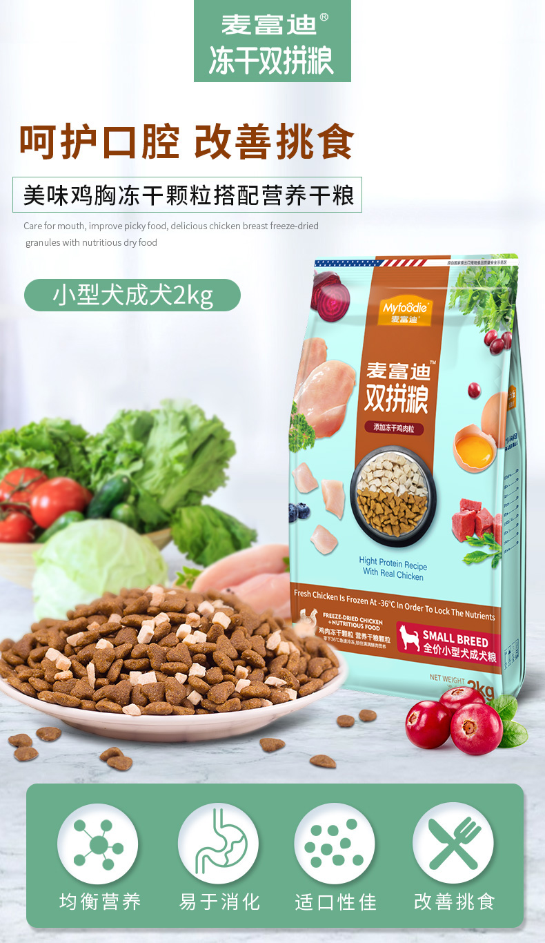 麦富迪冻干狗粮2kg 小型犬成犬粮双拼粮贵宾泰迪雪纳瑞通用型
