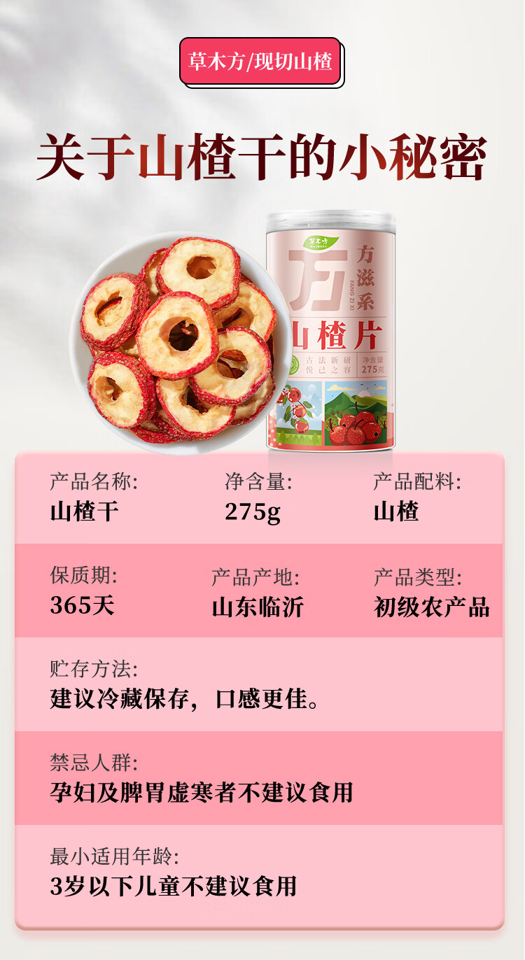 草木方 山楂干无核中片275g/罐 草木之间有良方
