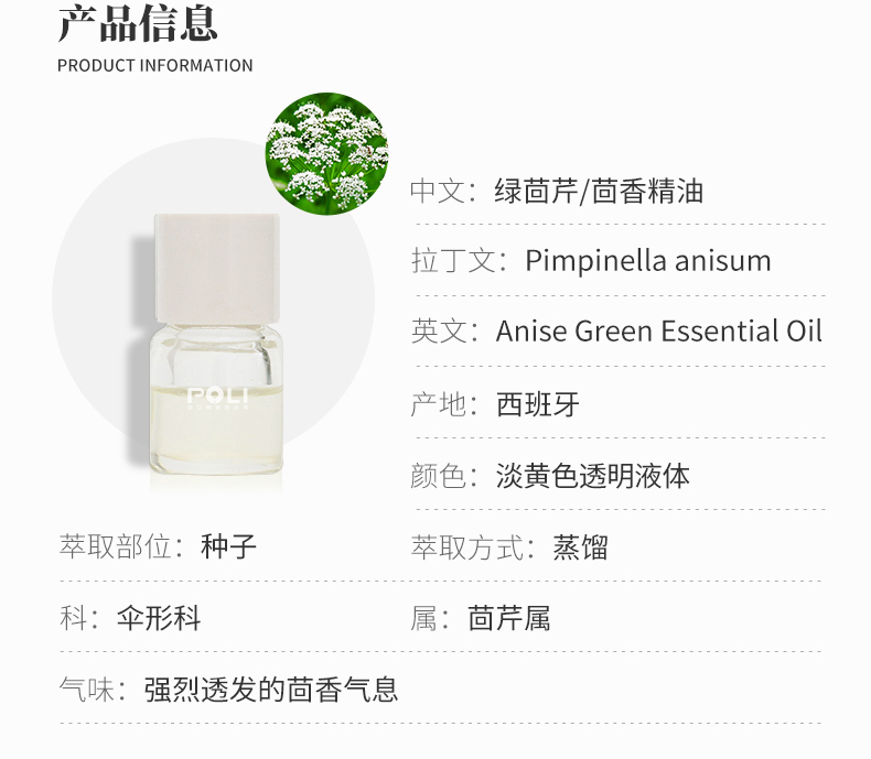 西班牙进口绿茴芹精油原料天然茴香按摩精油 颇黎香薰单方精油
