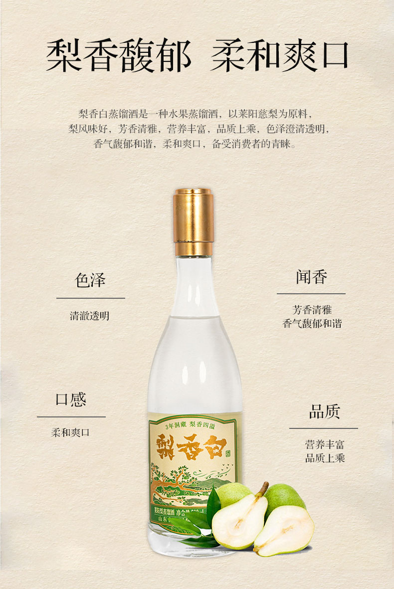 【梨香白酒】鲁花梨香白酒,梨香馥郁酒体丰盈、清爽柔润、柔和爽口
