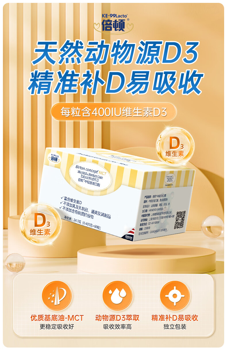 倍顿中链甘油三酯 富含维生素d3 倍顿维生素D