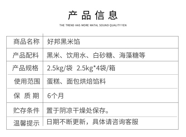 好邦黑米馅 2.5kg/袋 4袋/箱 面包 蛋糕 热奶宝糕点馅料