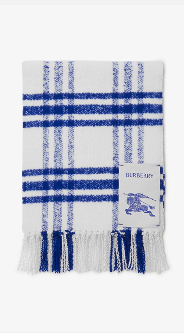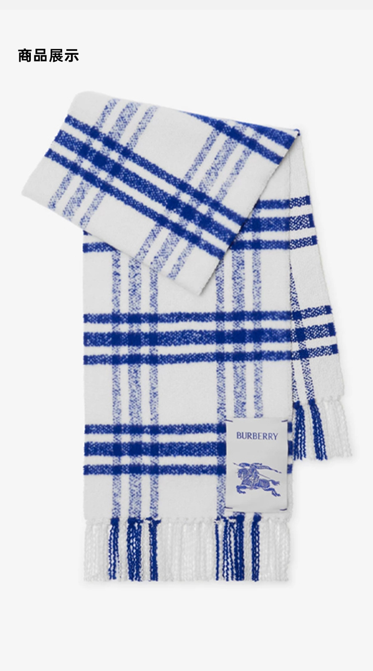 【二】BURBERRY 巴宝莉 女士马术骑士徽标贴花格纹羊毛围巾 格子 8079267 B7323