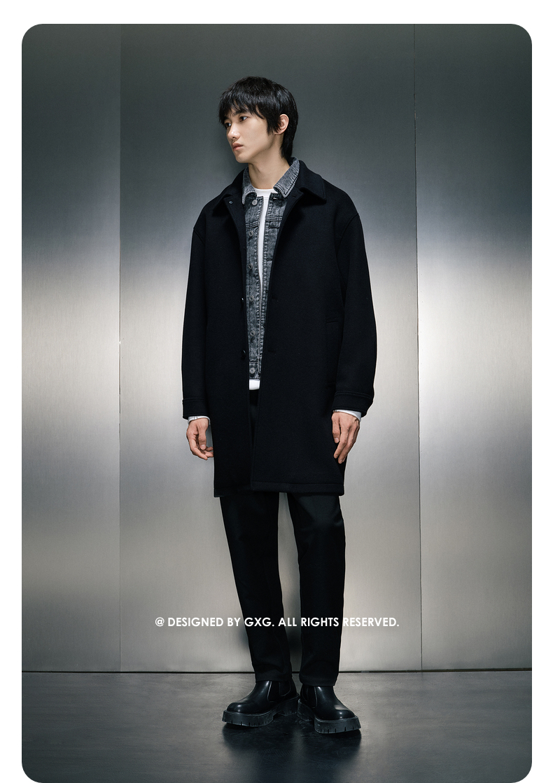 GXG男装 经典立绒双面呢口袋短款羊毛大衣外套 2025冬季新品