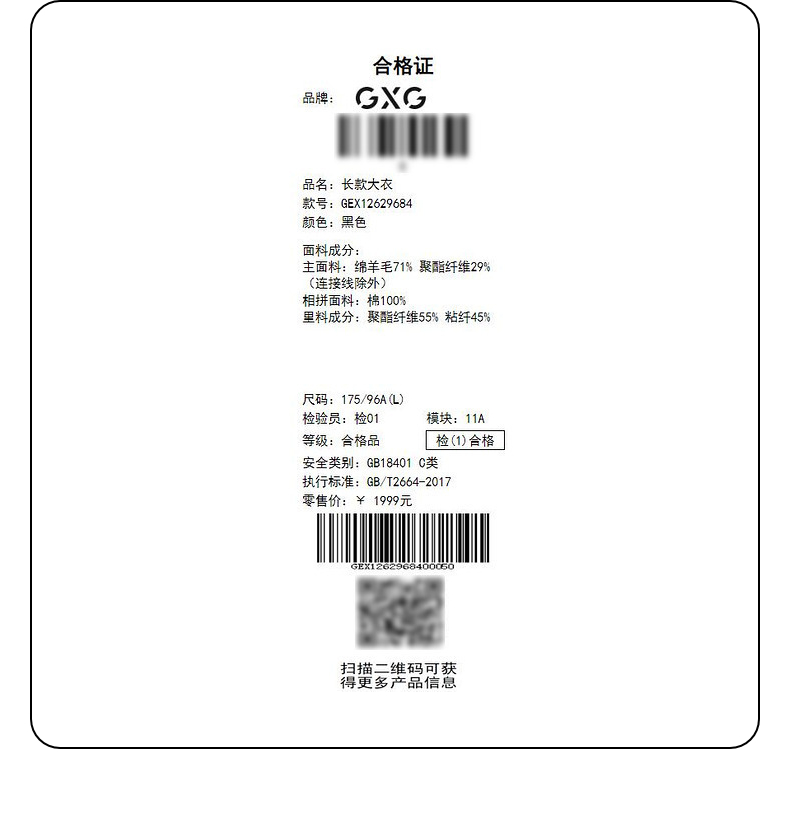 GXG男装 可卸牛仔领黑色长大衣 冬季热卖气质大衣GEX12629684