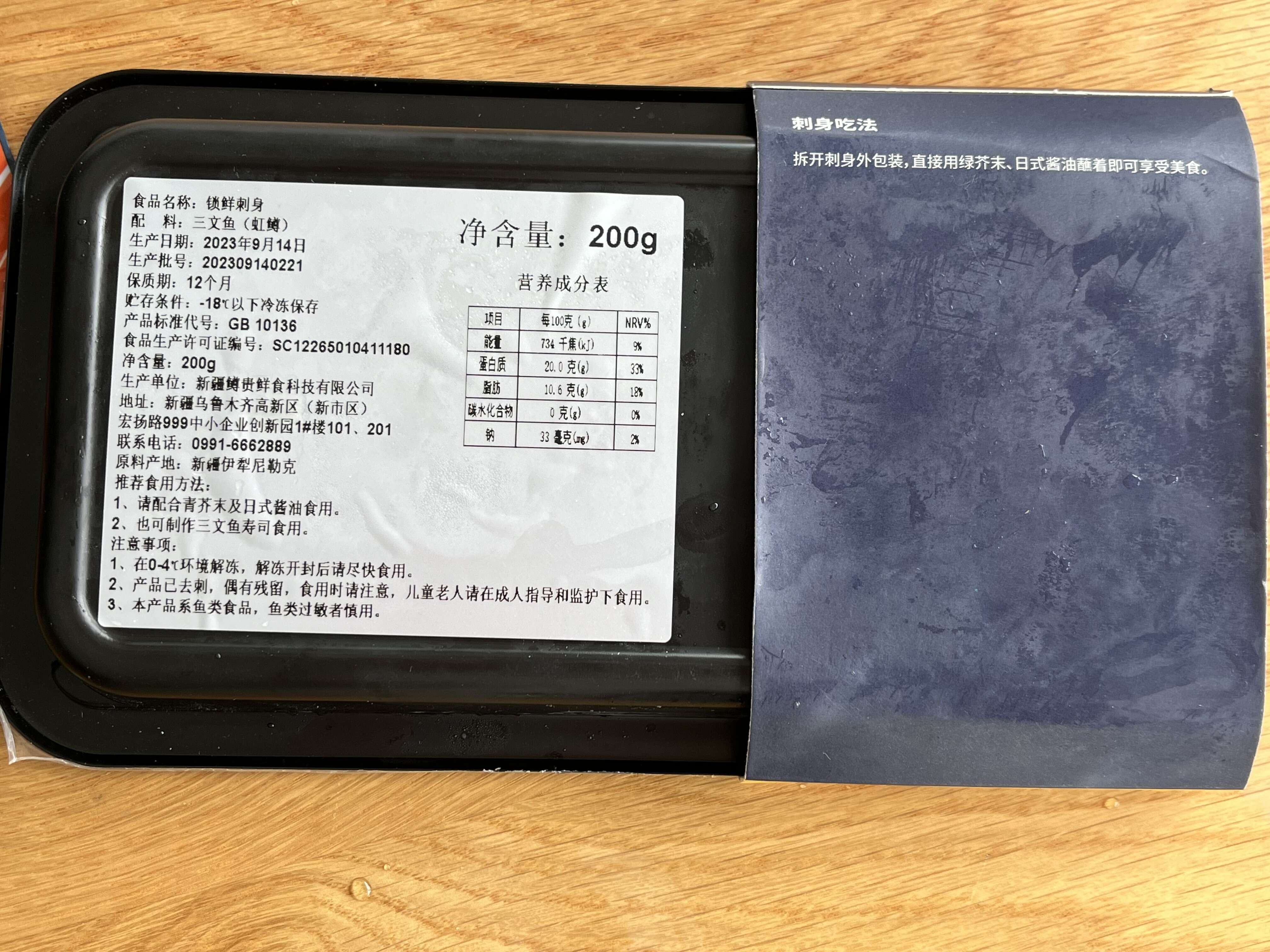 【配料】三文鱼(虹鳟)、食用盐