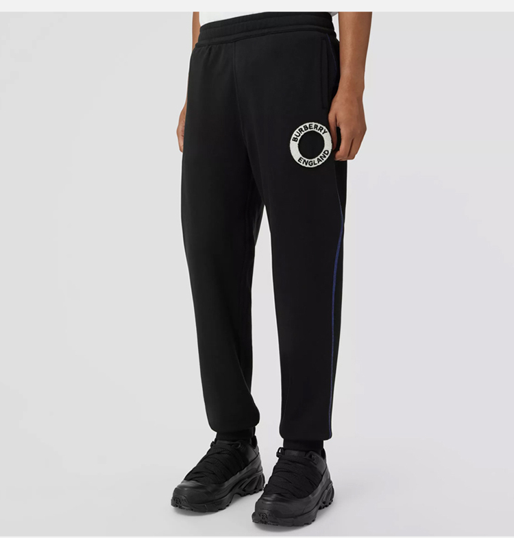 BURBERRY 巴宝莉 男士徽标图案贴花棉质休闲运动裤 黑色 8060792 A1189