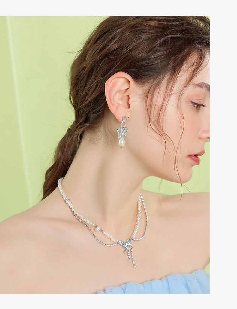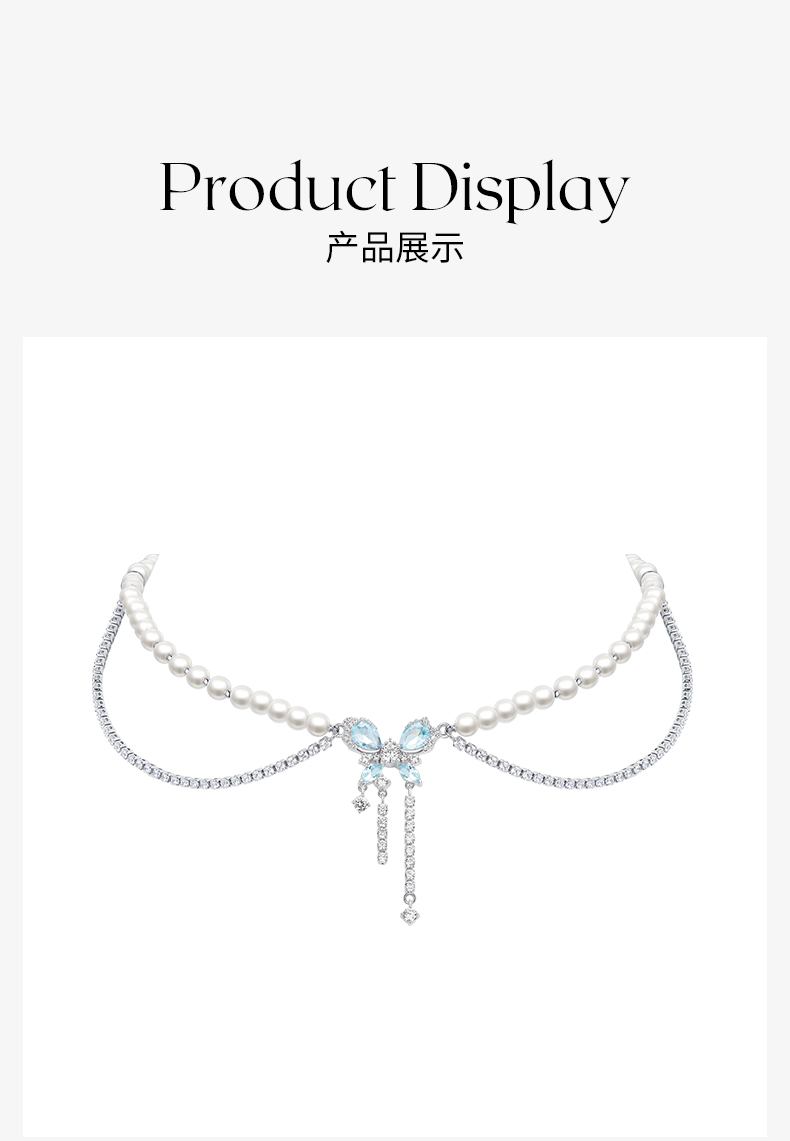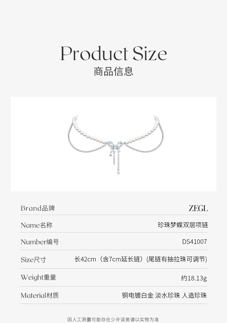 ZEGL设计师薄荷梦蝶系列蝴蝶珍珠双层项链女轻奢小众高级感锁骨链