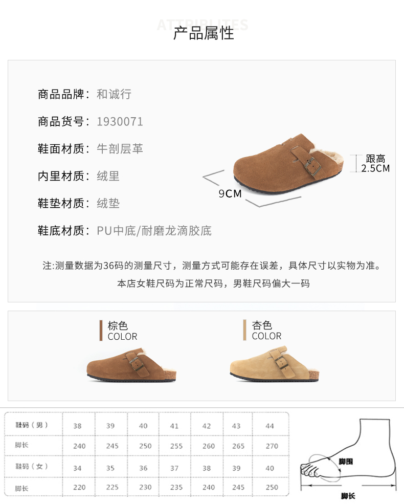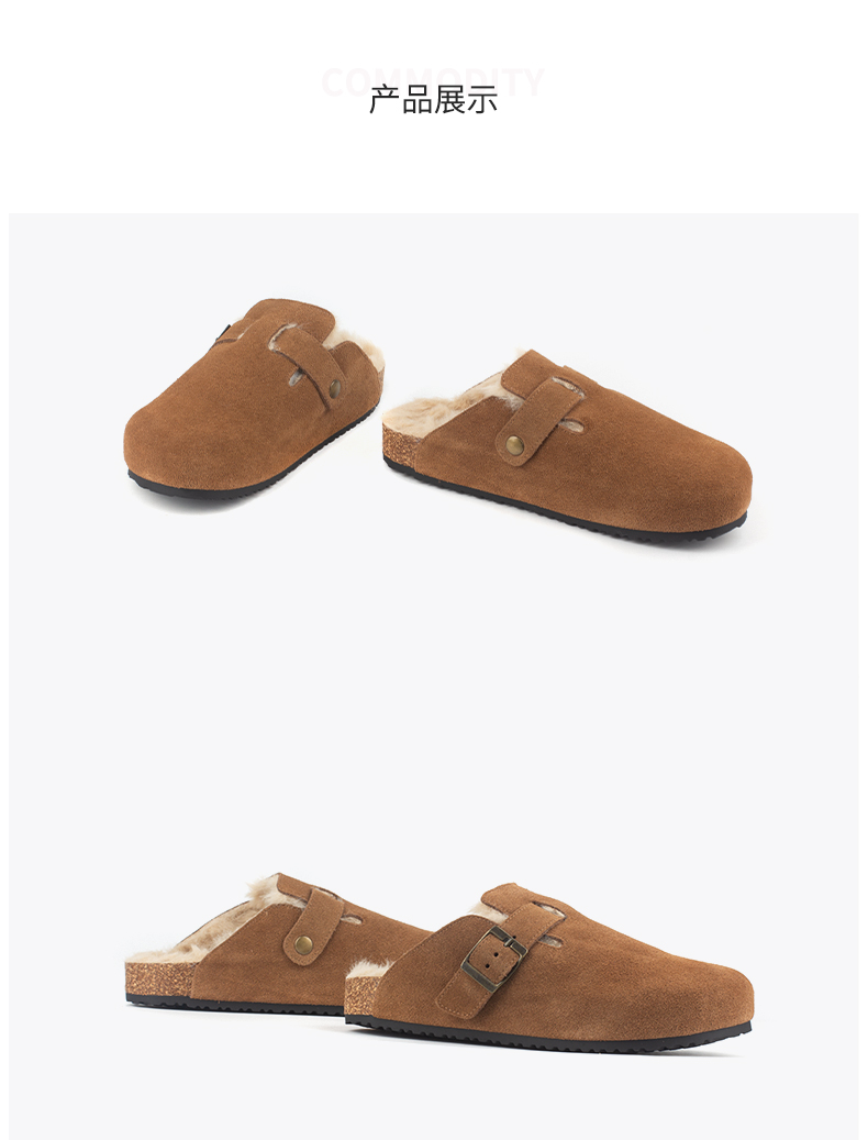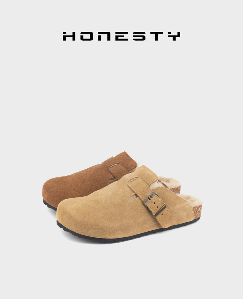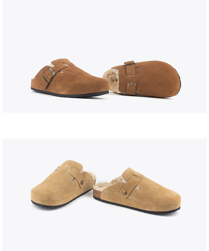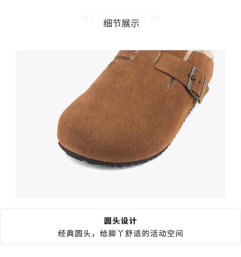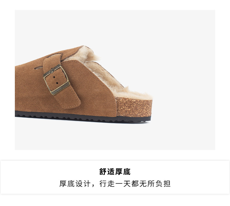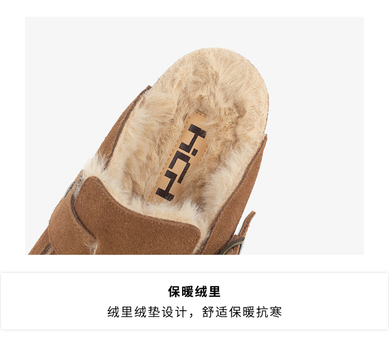 和诚行 2024秋冬新款复古加绒厚底勃肯女百搭休闲半包拖鞋1930071