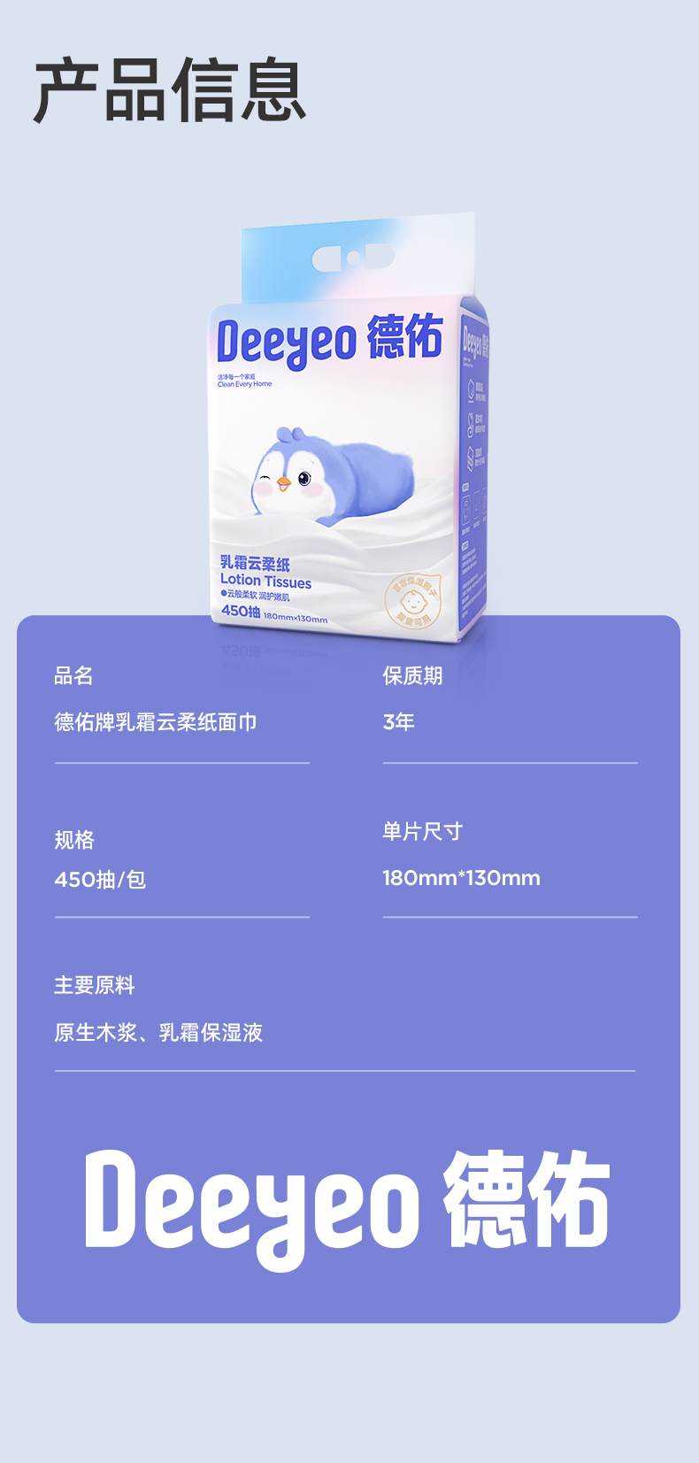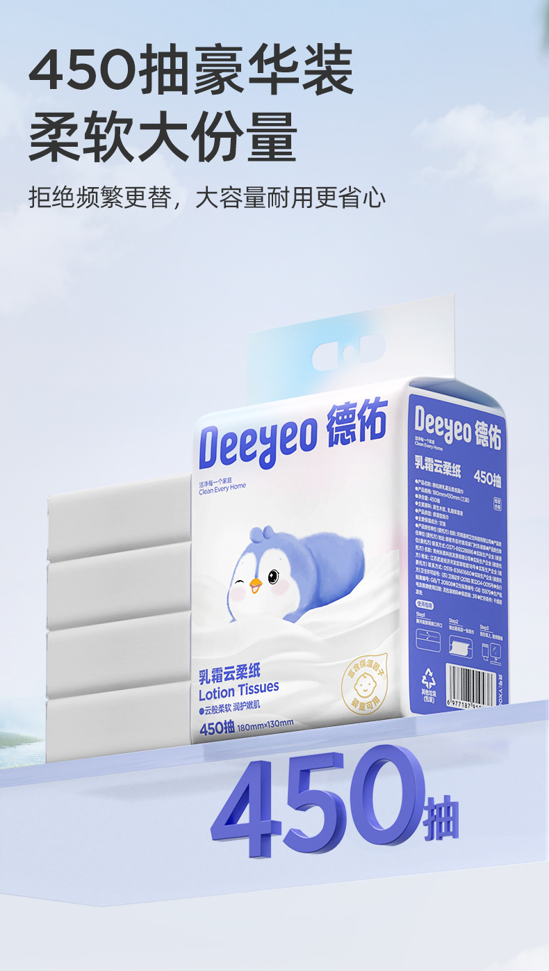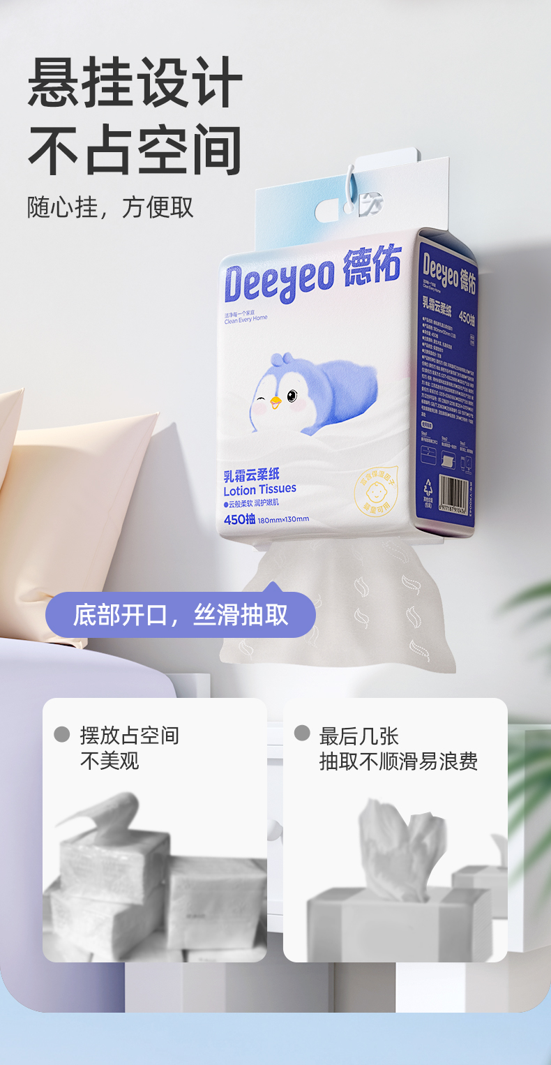 德佑 悬挂乳霜云柔纸面巾450抽*1提/3提 食品级标准 柔韧亲肤 48小时发货