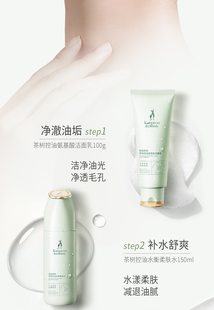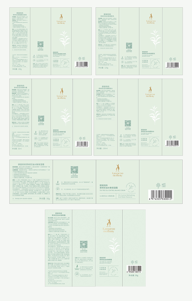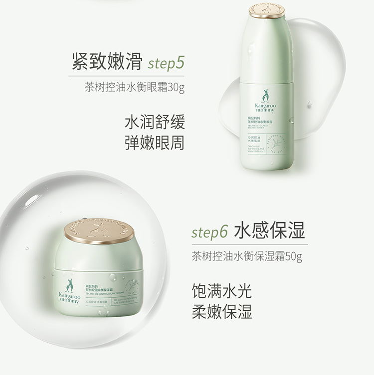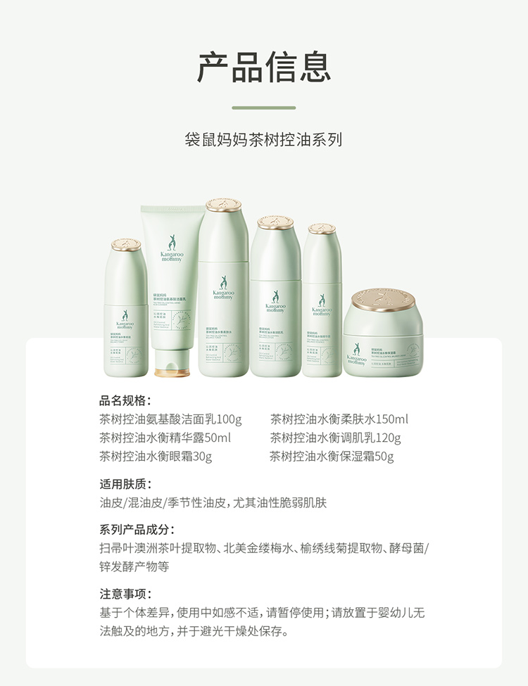 【控油6件套】 油痘肌必入 控油补水 收敛毛孔 舒缓泛红 茶树控油水衡6件套(洁面乳+柔肤水+调肌乳+精华露+保湿霜+眼霜)