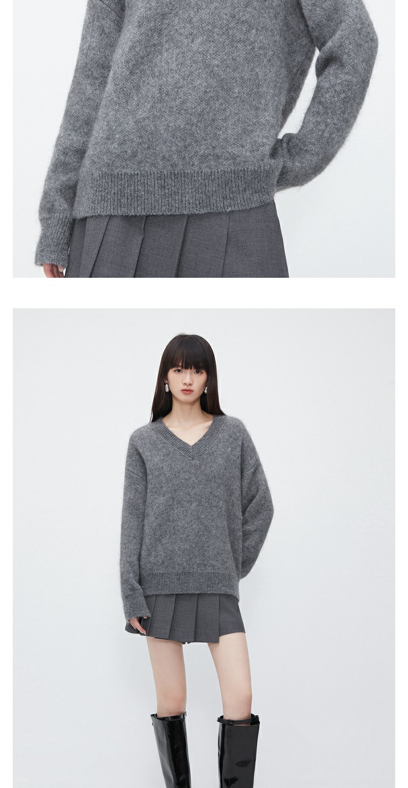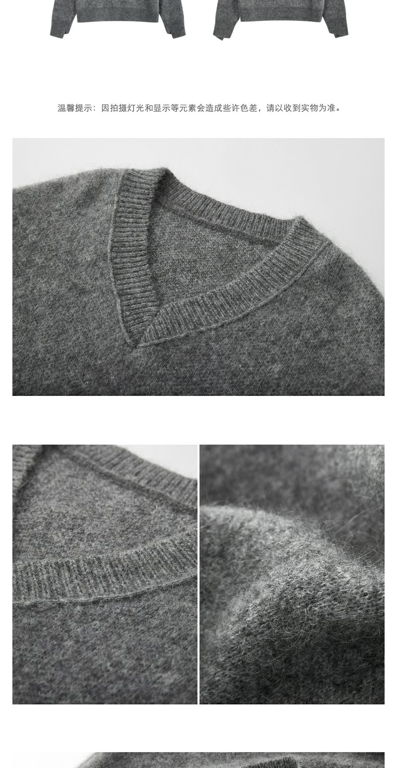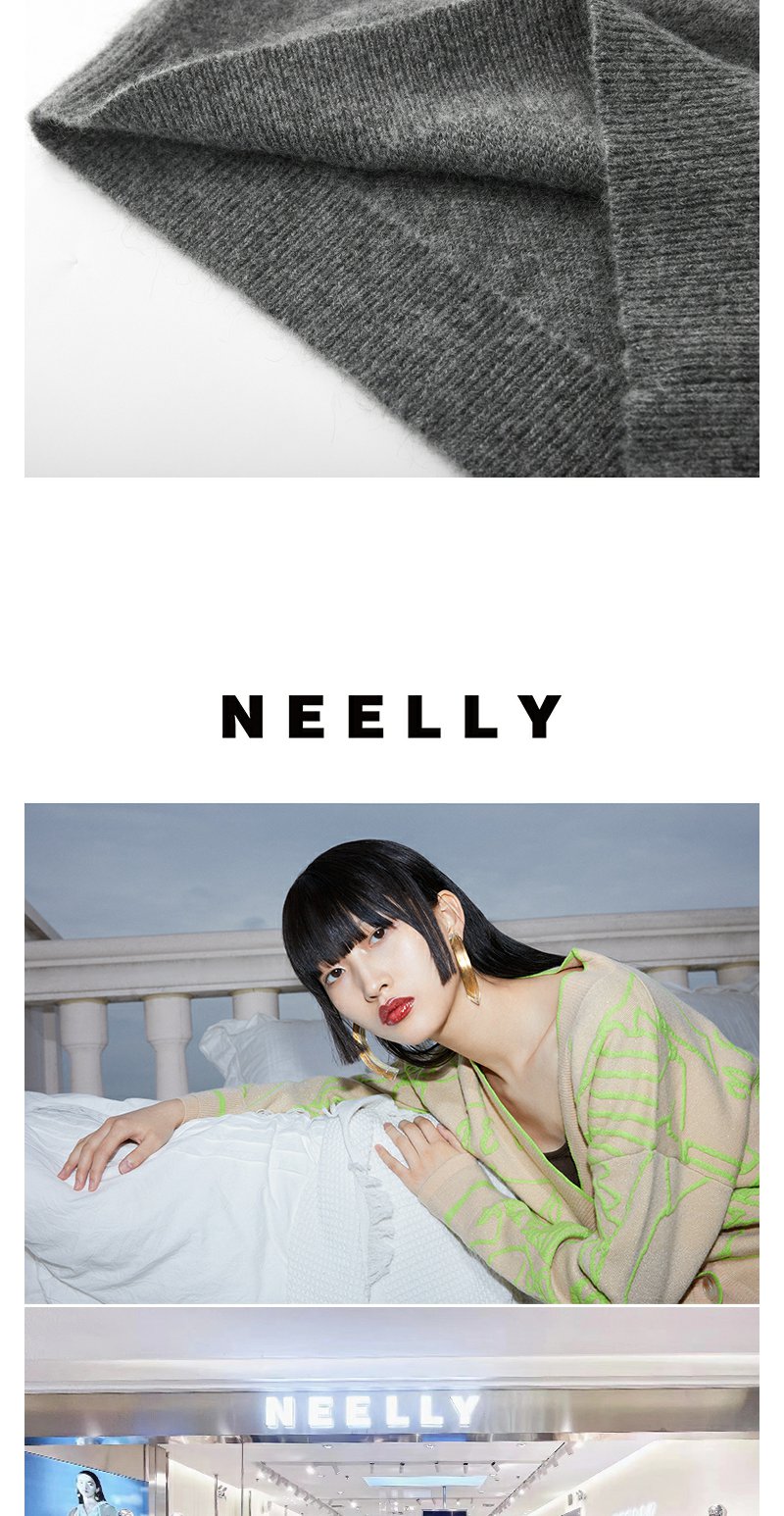NEELLY纳俪商场同款灰色V领套头毛衣女高级感慵懒洋气百搭针织衫N23121A01208