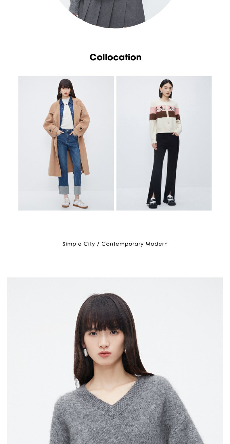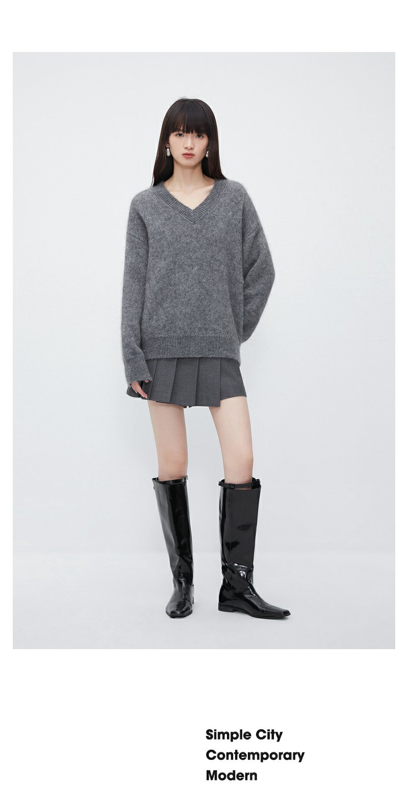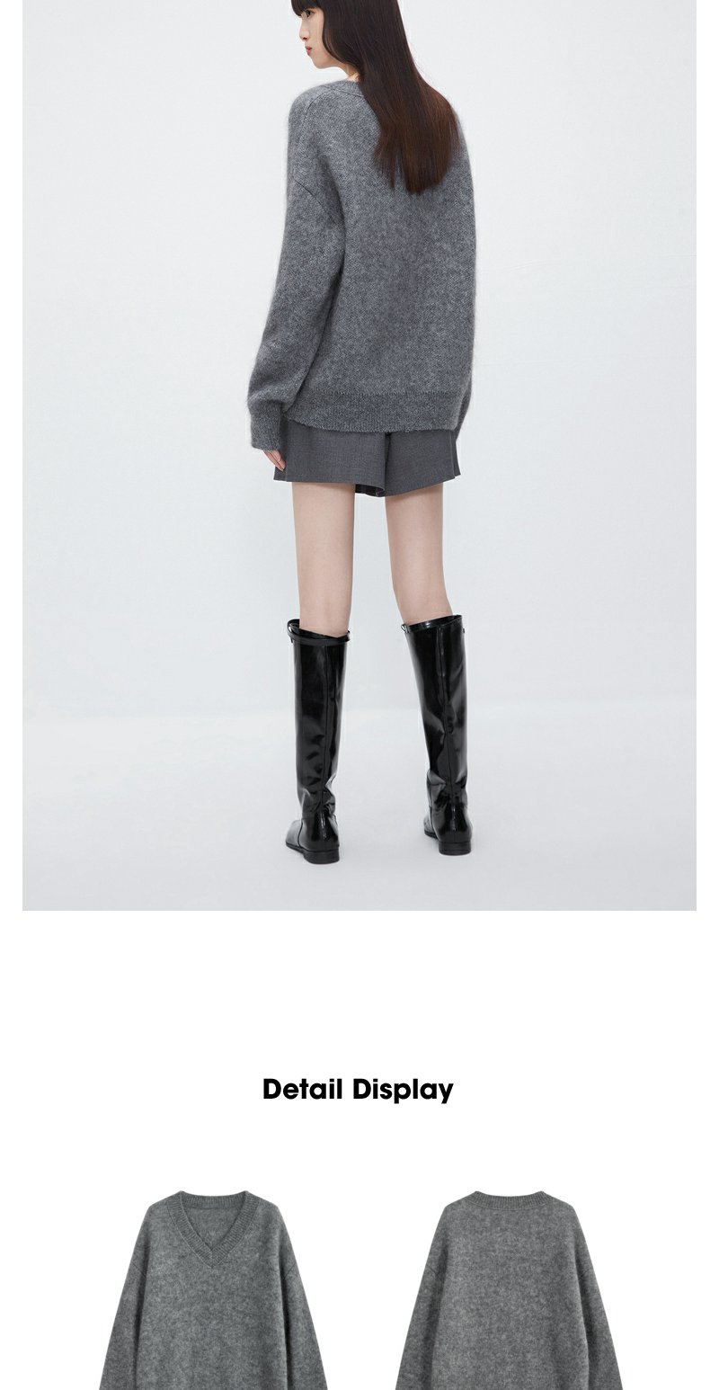 NEELLY纳俪商场同款灰色V领套头毛衣女高级感慵懒洋气百搭针织衫N23121A01208