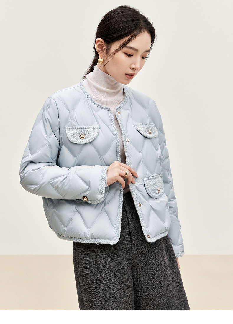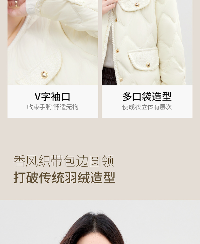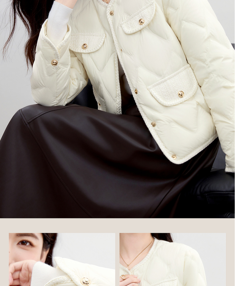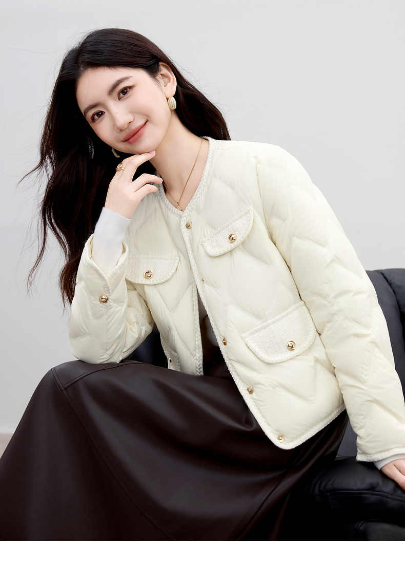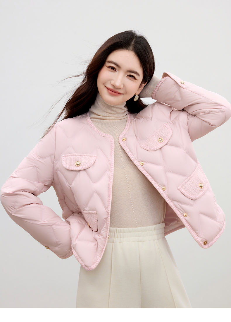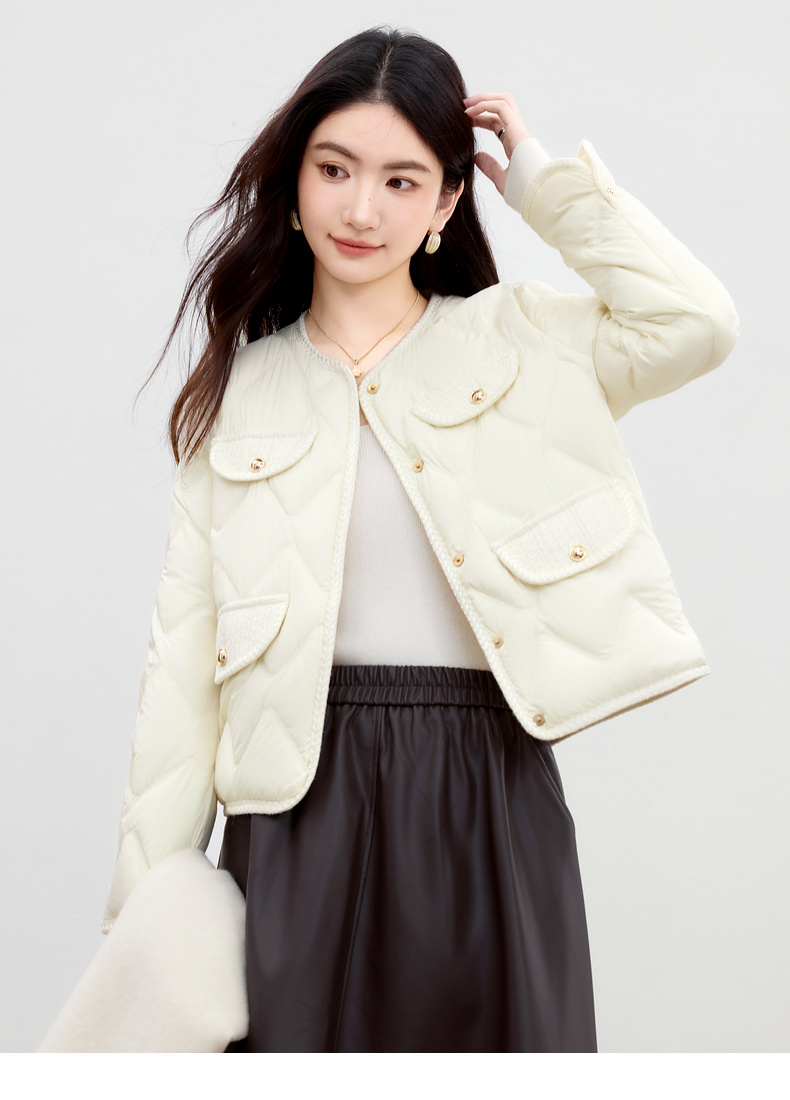 【内购】尚都比拉冬季新款小香风轻薄多口袋时髦显瘦短款羽绒服-W44Y56638