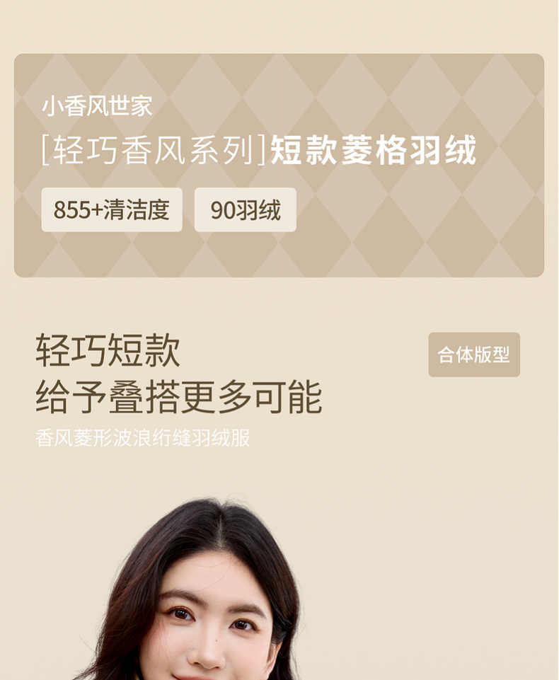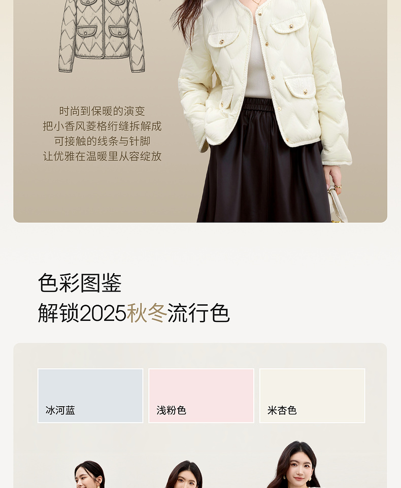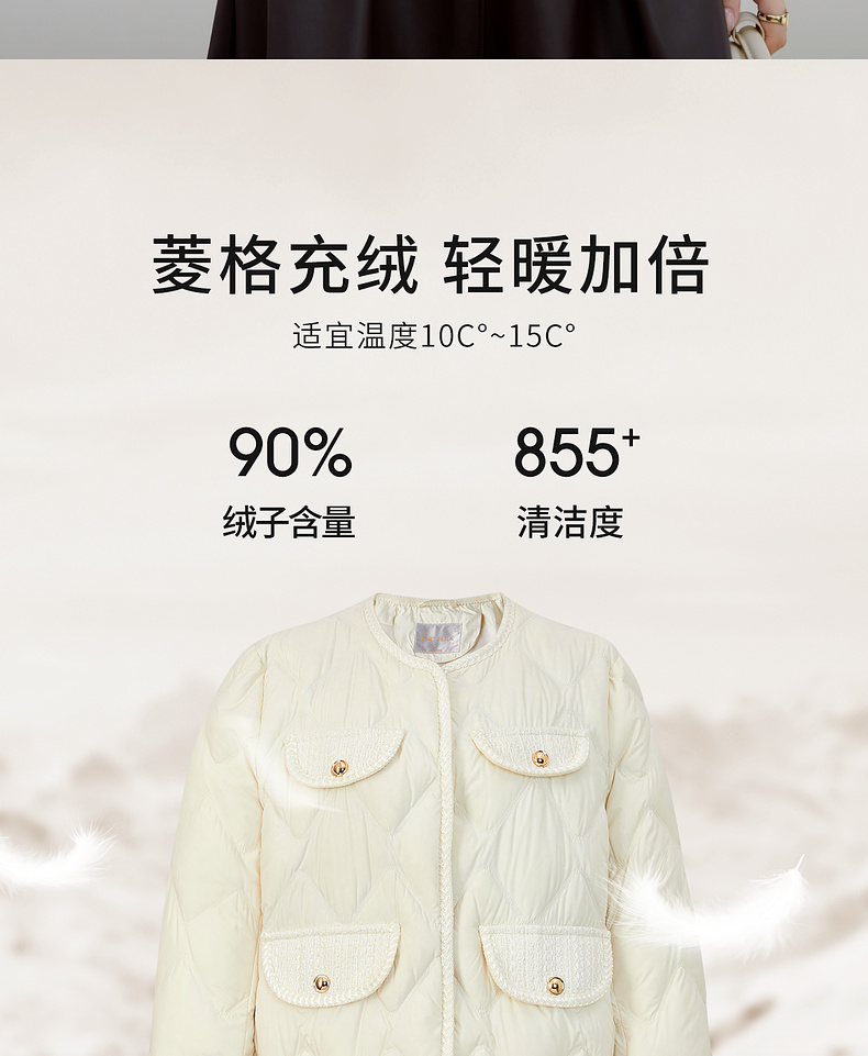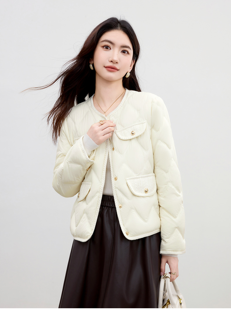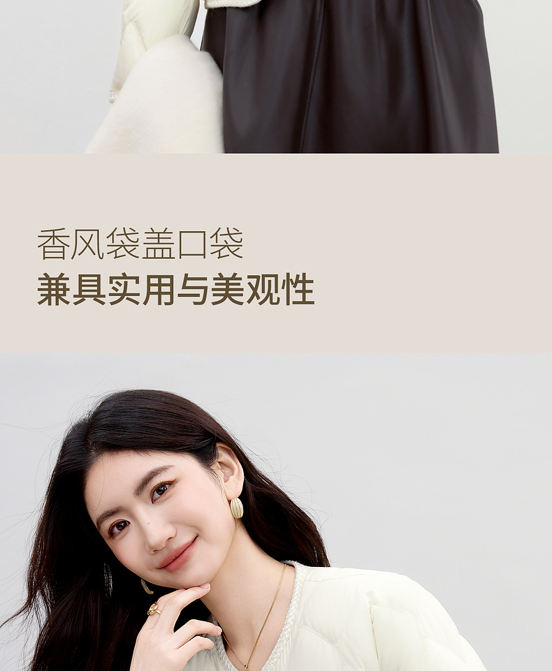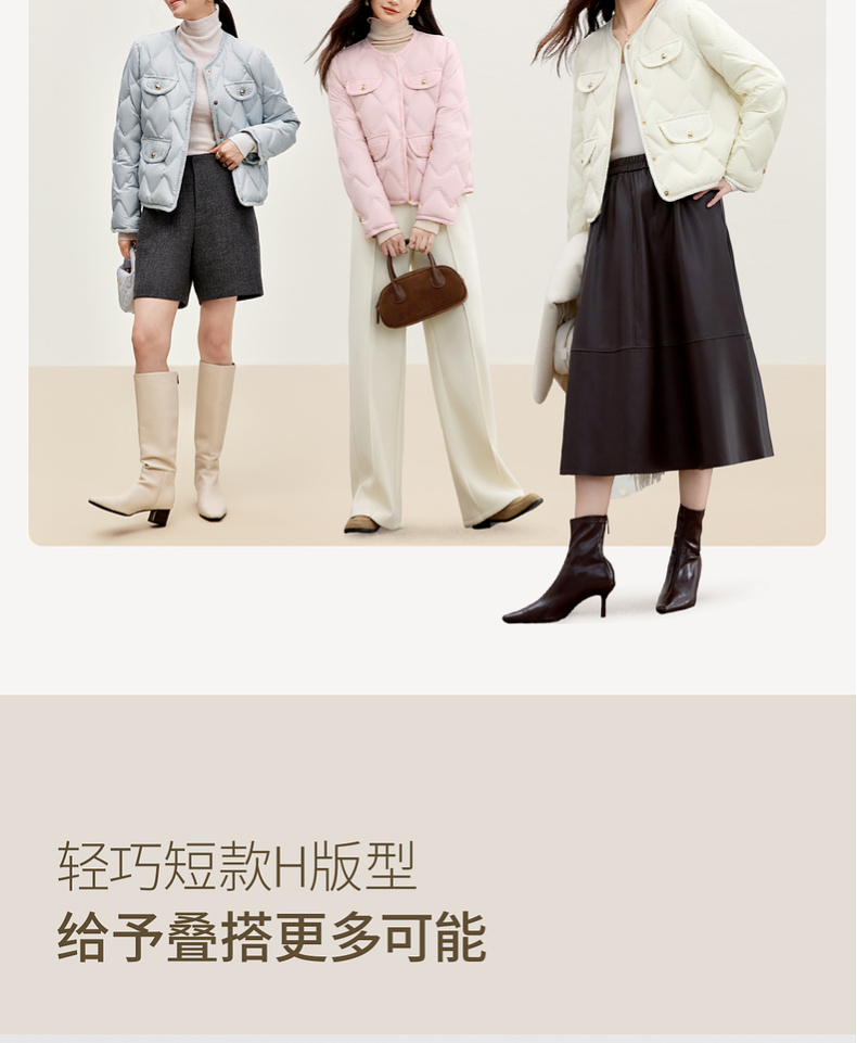 【内购】尚都比拉冬季新款小香风轻薄多口袋时髦显瘦短款羽绒服-W44Y56638