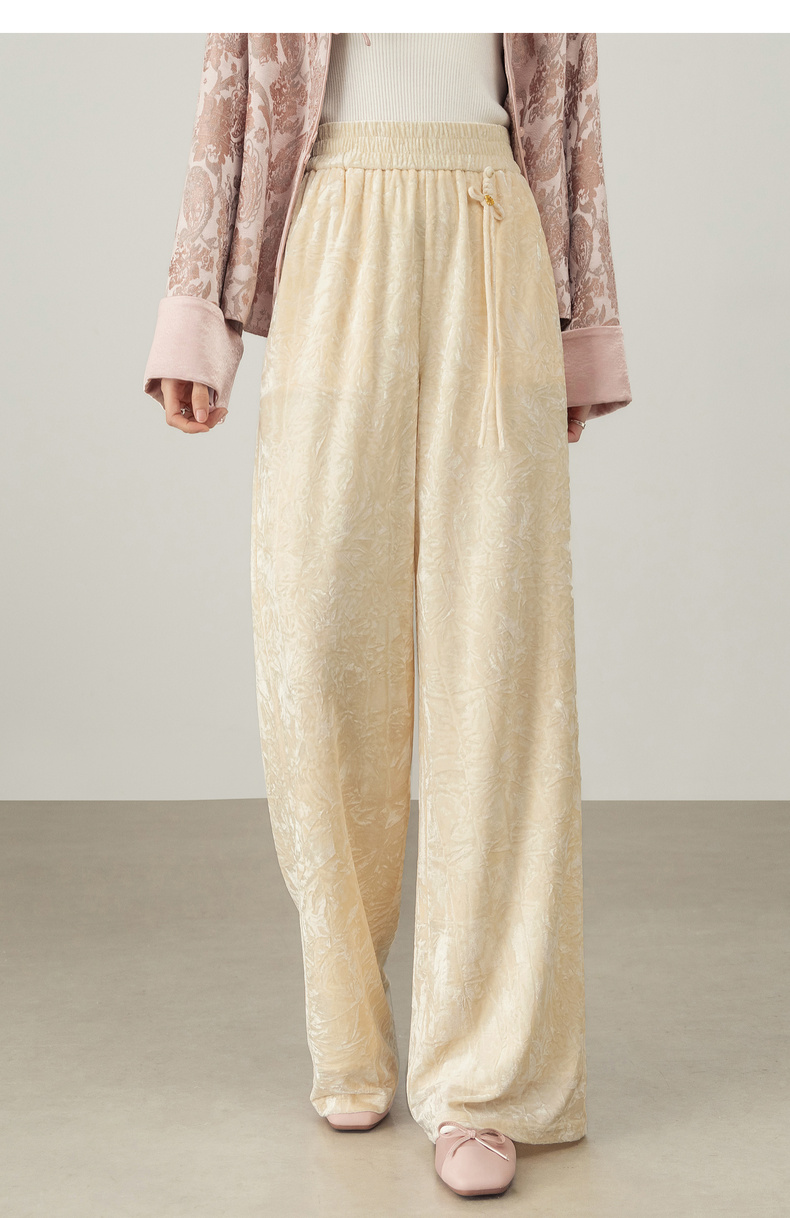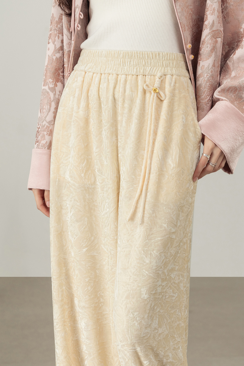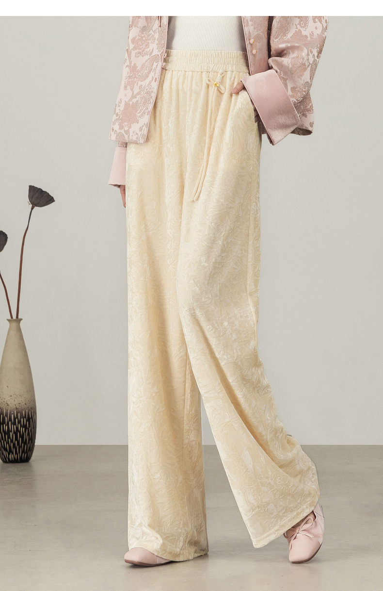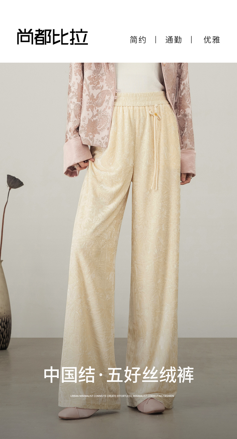 【内购】【五好裤】简约通勤手工中国结吊坠松紧腰丝绒弹力阔腿直筒裤-154KA4091