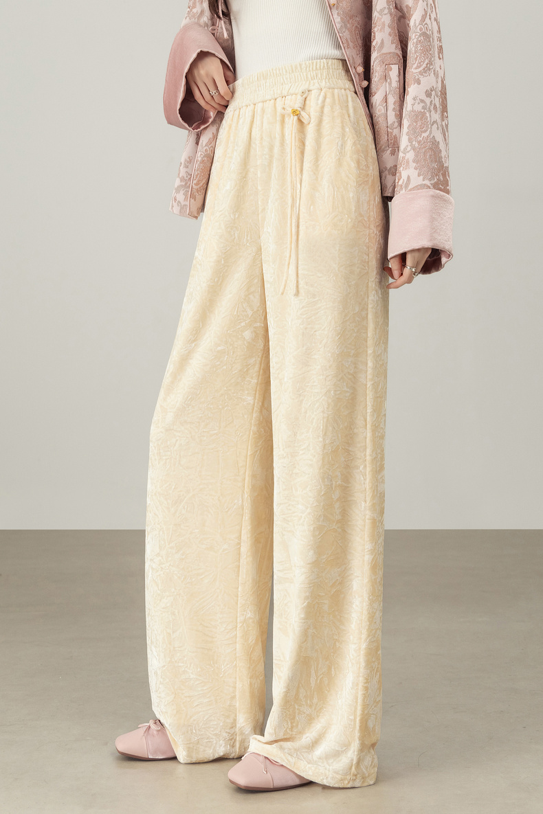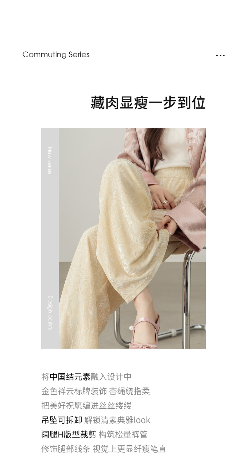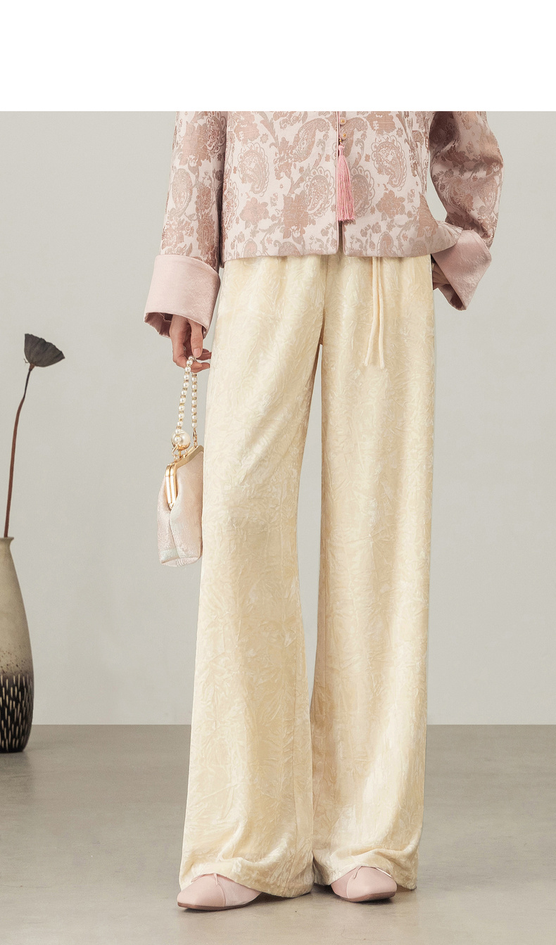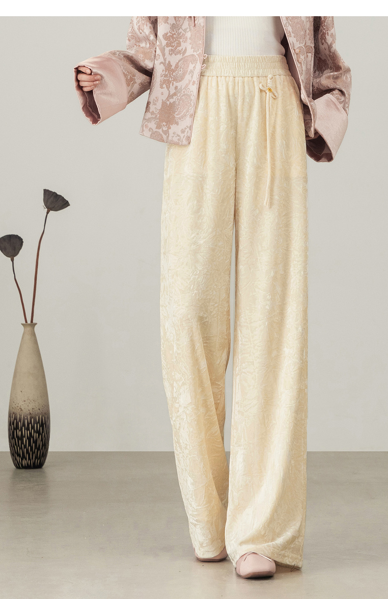 【内购】【五好裤】简约通勤手工中国结吊坠松紧腰丝绒弹力阔腿直筒裤-154KA4091