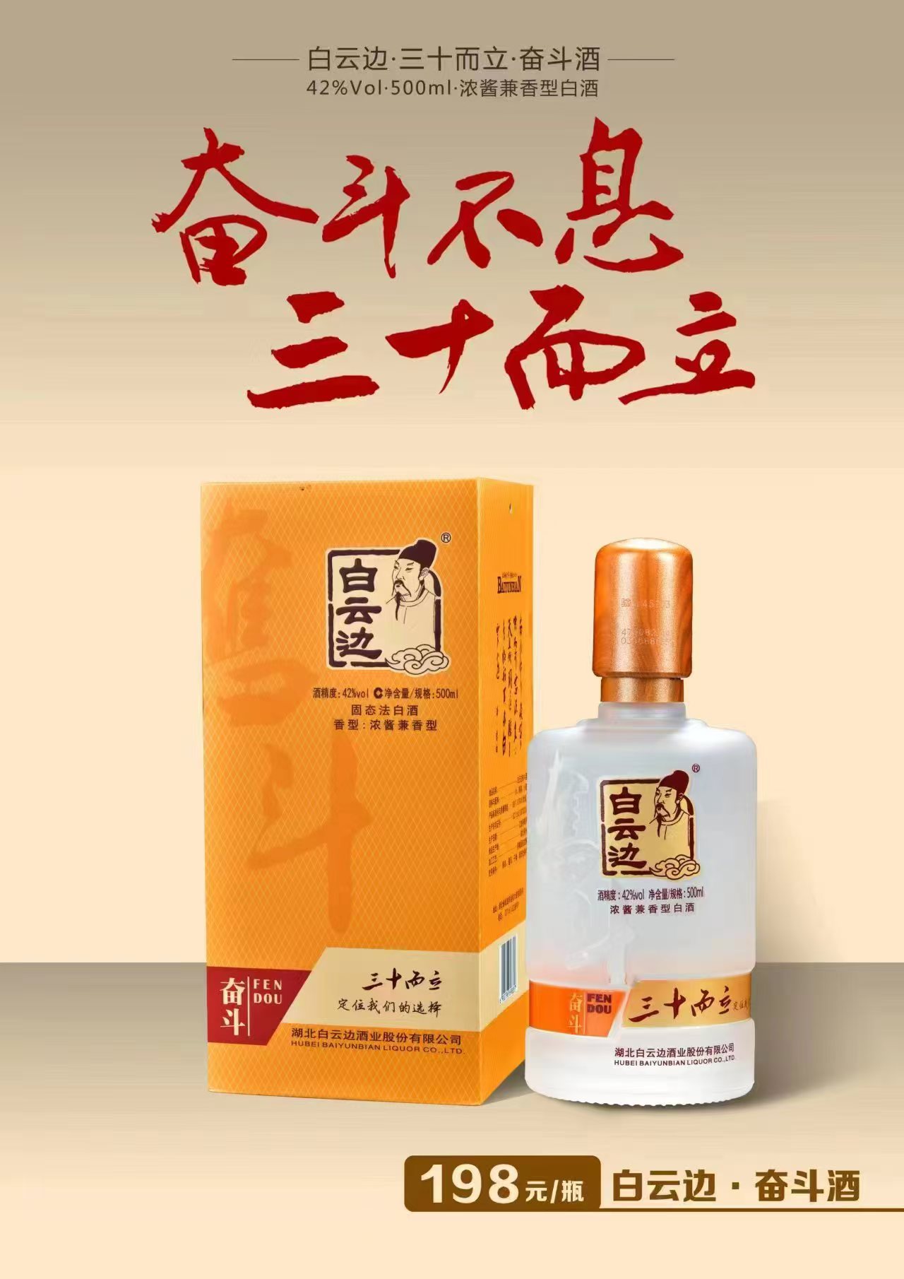 白云边奋斗酒礼袋装(酒精度:42%vol)/1份(500ml*2瓶)生产日期:23年10月