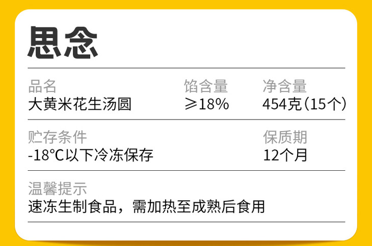 思念大黄米汤圆(花生馅)/1包(15个,共454g)生产日期:25年11月